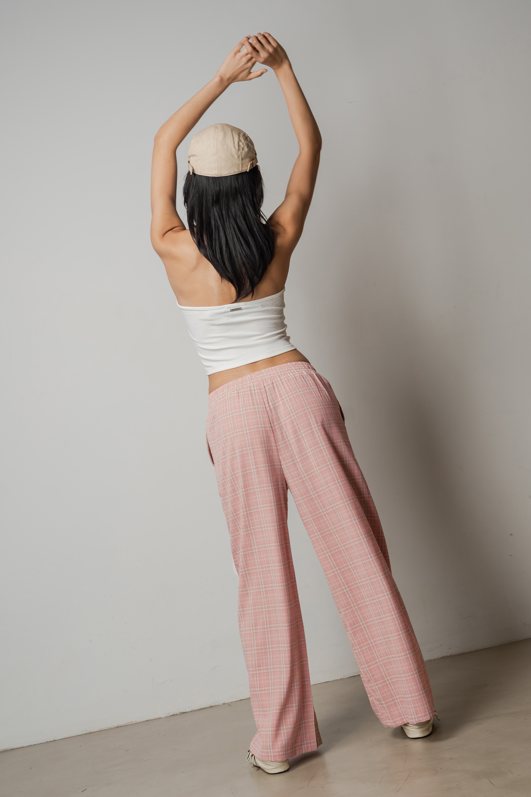 Unwind in comfort with the R&R Relaxed Lounge Button Pants, designed in a flowy maxi silhouette with a soft, subtle flare. The checkered pattern and front-button details add a refined touch, while the elastic waistband offers all-day ease. Pair it with the matching top or a simple crop for a relaxed, coordinated look perfect for lounging, travel, or casual outings.