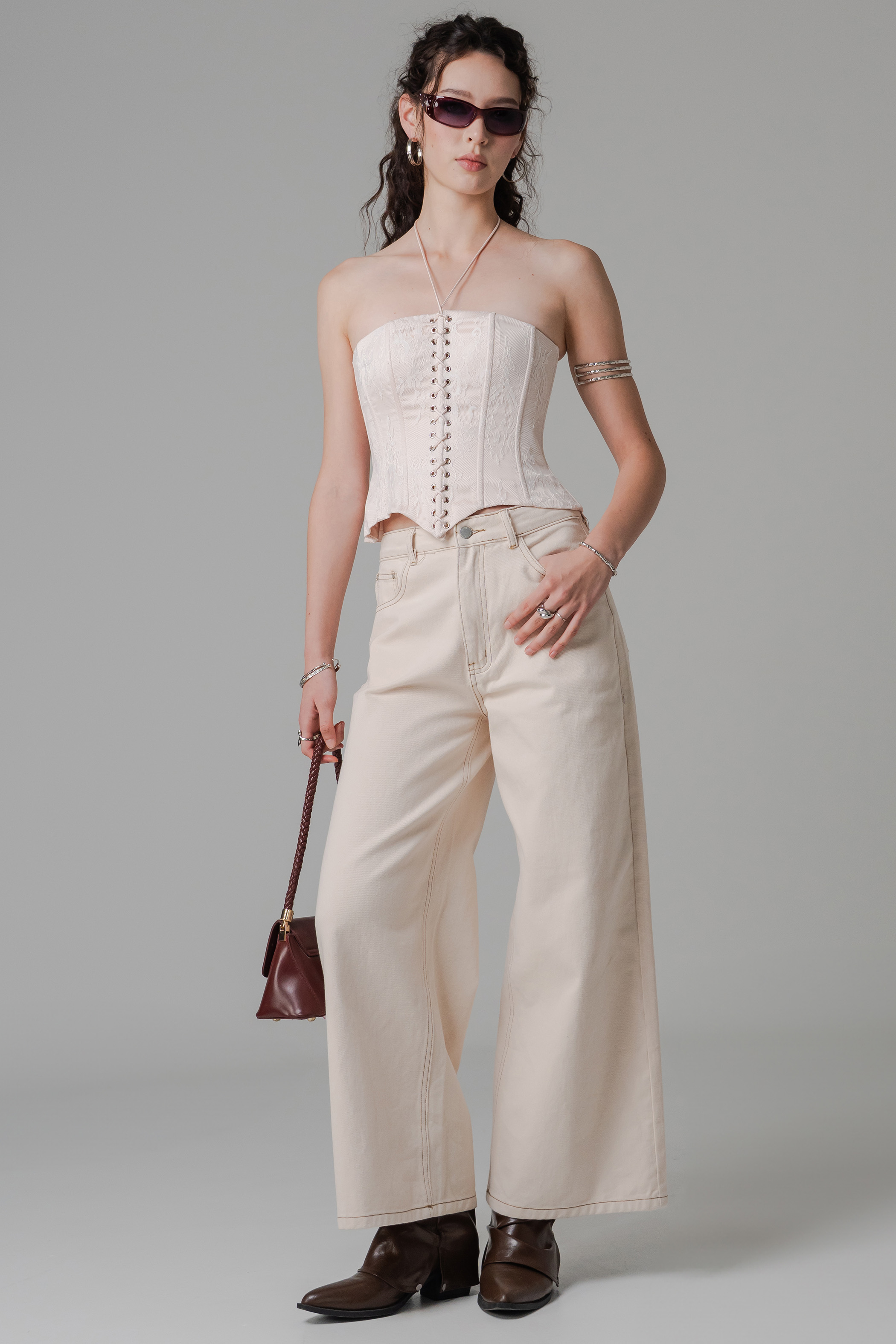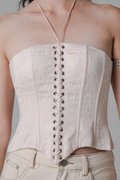 The Reserve Lace Corset Top brings a daring edge to feminine allure. Cut in a cropped, fitted silhouette, it features a lace-up front with tie holes that sculpt and define. The sleeveless, low-back design amps up the confidence, while rugged lace details lend a raw, rebellious charm. Equal parts bold and refined, this corset top commands attention — whether paired with denim or dressed up for the night.