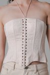 Closure: Back Zipper, Front Straps Pockets: - Belt Loops: - Straps: - Bra Recommendation: Strapless/ Stick-on Bra Padding: - Silhouette: Corset |