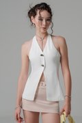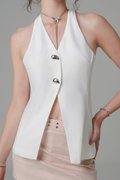 The Trove Halter Tailored Vest Top brings a modern twist to classic tailoring with its halter neckline, V-cut front, and backless design. Finished with statement front buttons and a softly flared silhouette, it’s a sleek, versatile piece perfect for both formal and everyday occasions.
