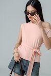 Decompress Tie Off Shoulder Top in Pink Blush