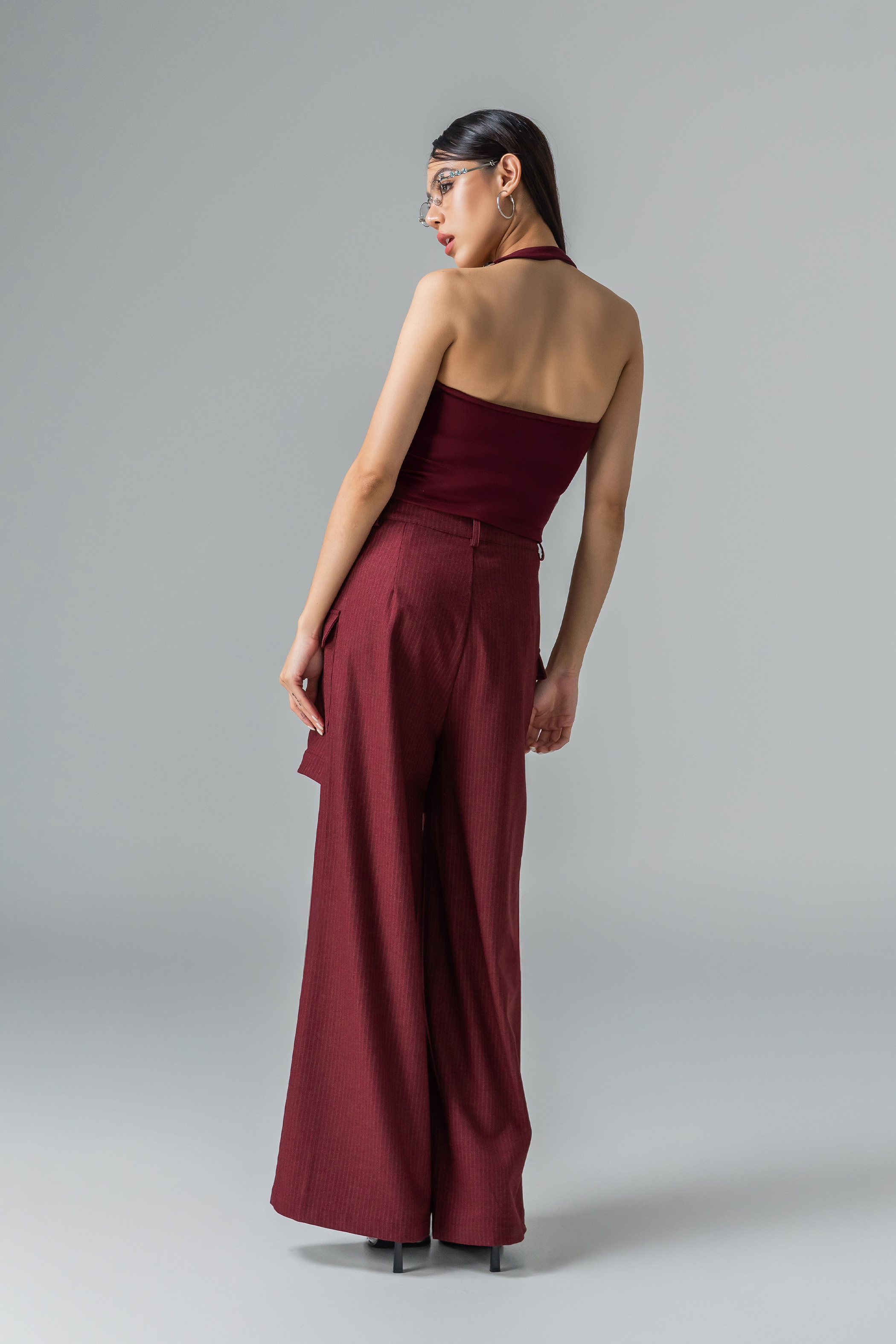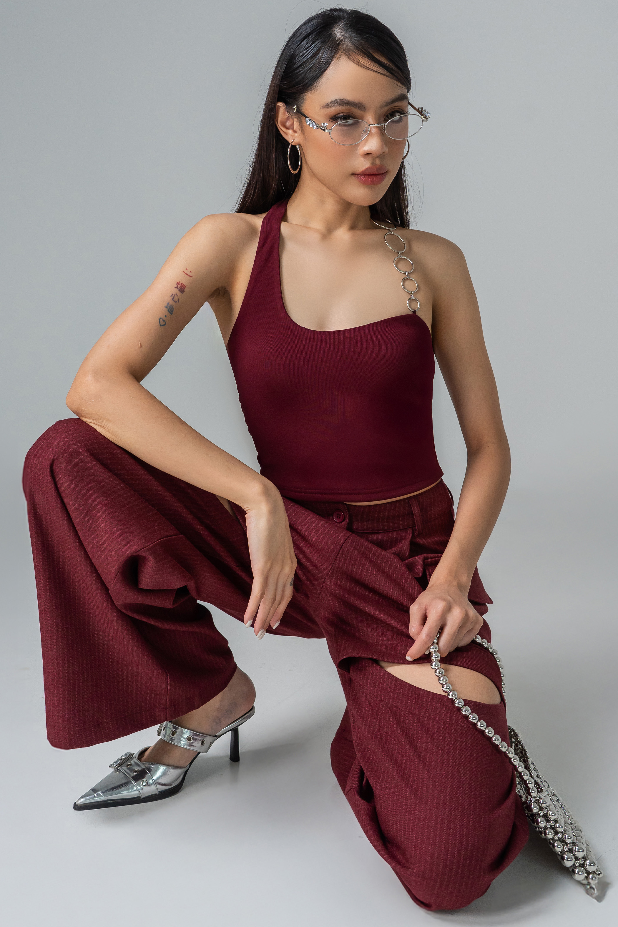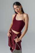 Metal-ringed halter straps hint at mischief, while the cropped fit keeps the energy playful yet polished. Padded for comfort, this top moves with you. A piece that feels alive with style, edge, and personality.