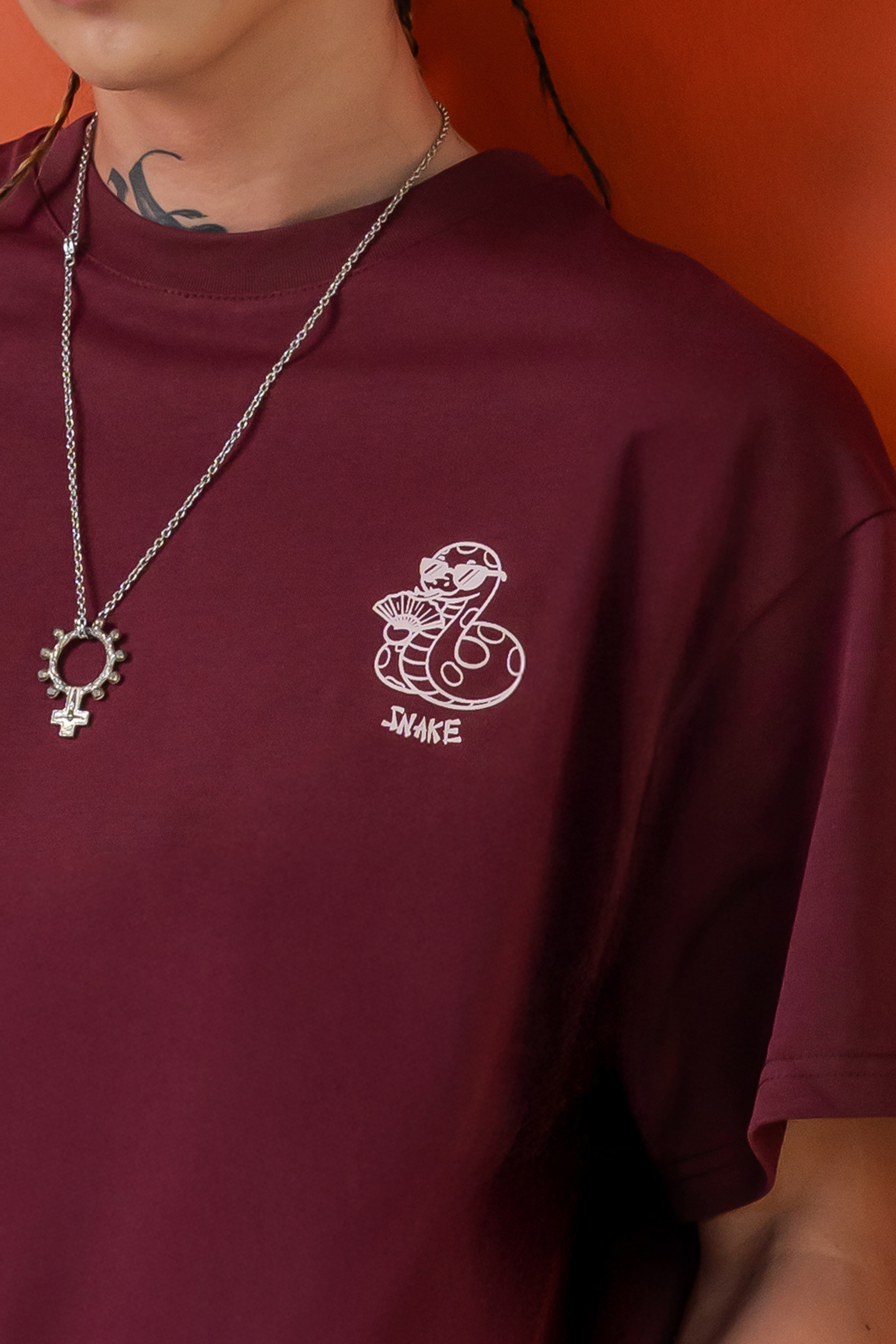 Sassy Snake Tee in Dark Carmine