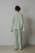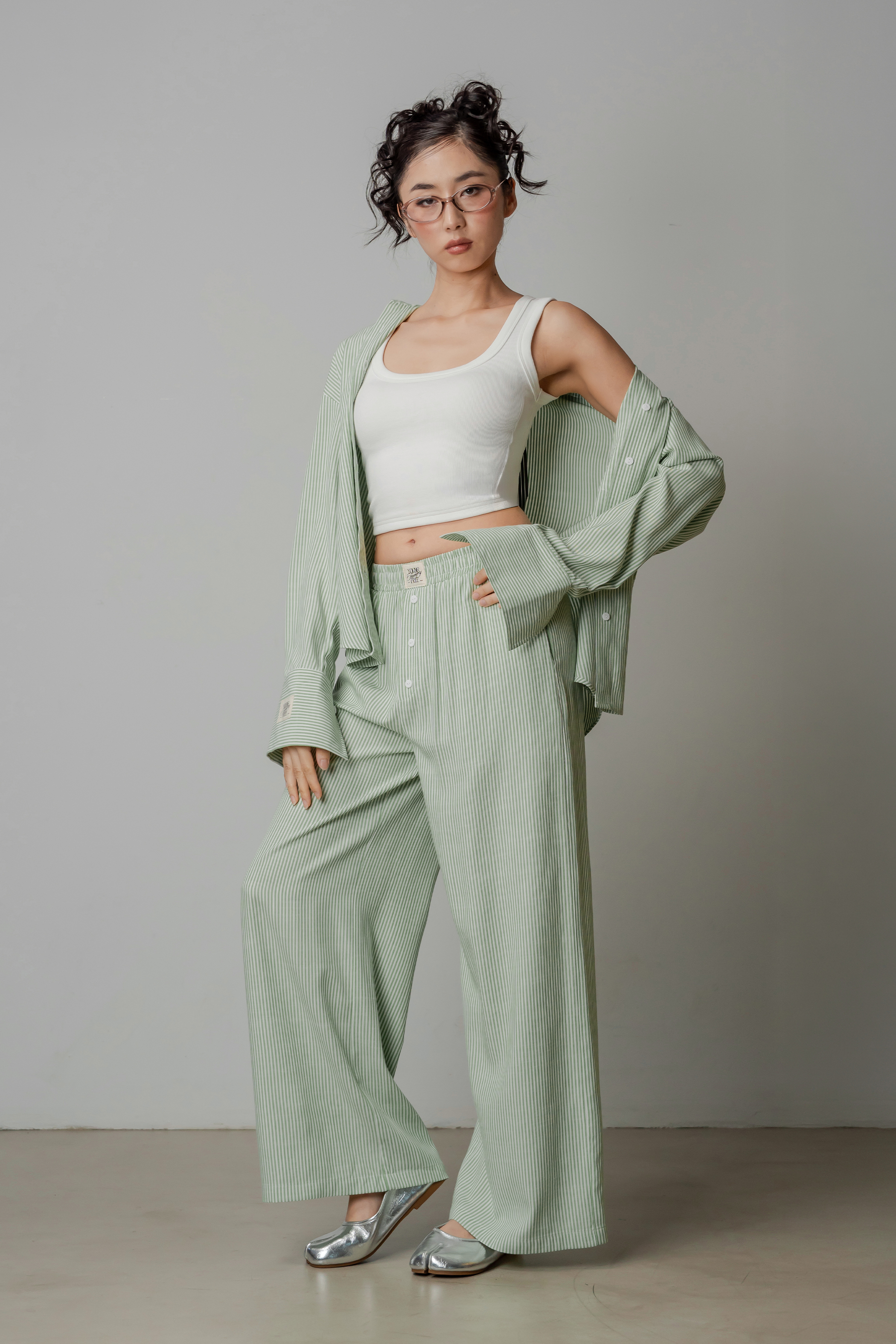 Easy and unhurried, the Sedate Lazy Oversized Shirt Button Top features a loose, drapey silhouette with clean stripes, a collared neckline, and full button-front detailing. Now back with fresh stripe options, it blends everyday comfort with a touch of polish. Pair it with the coordinating pants or shorts for a relaxed, cohesive set.