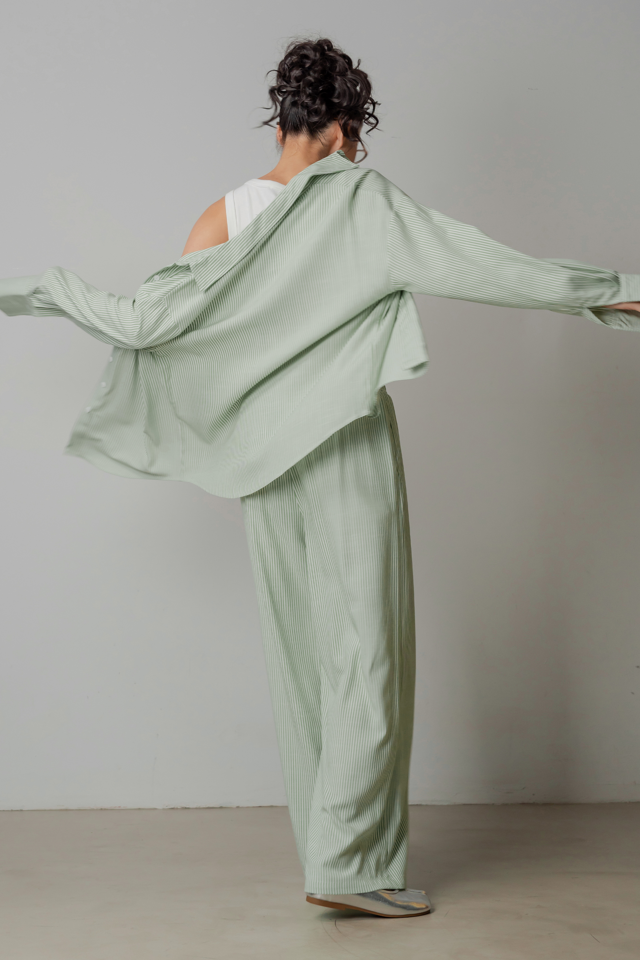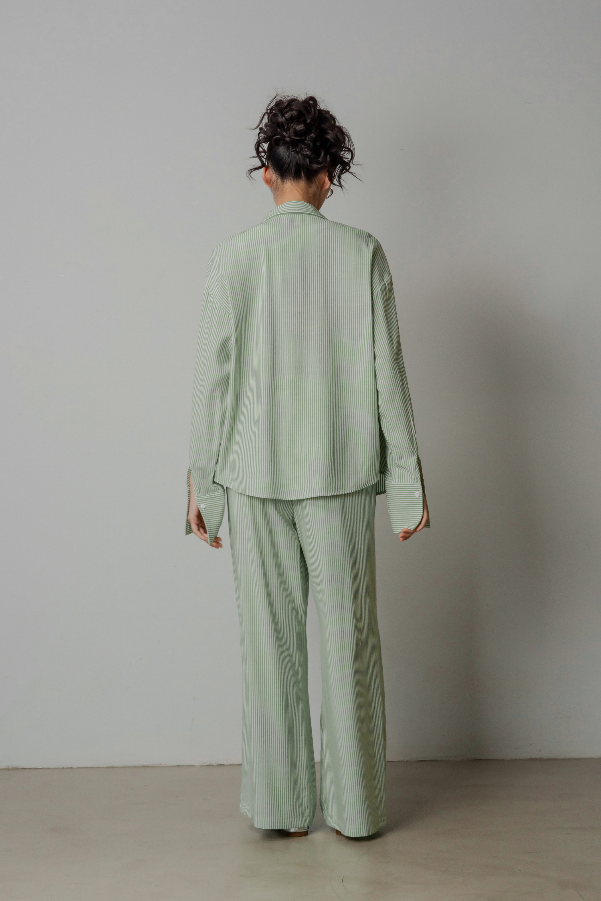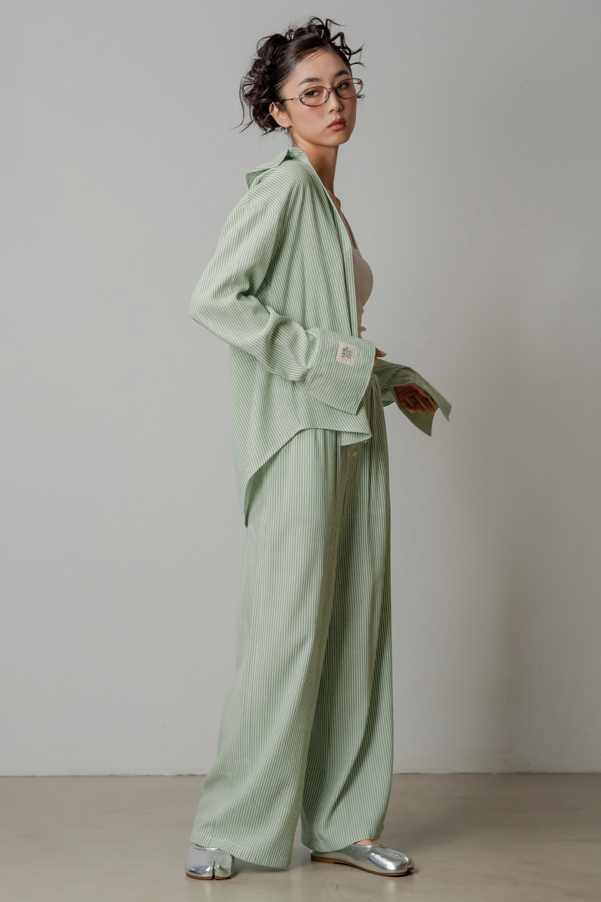 Sedate Lazy Oversized Shirt Button Top in Apple Green Stripes