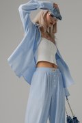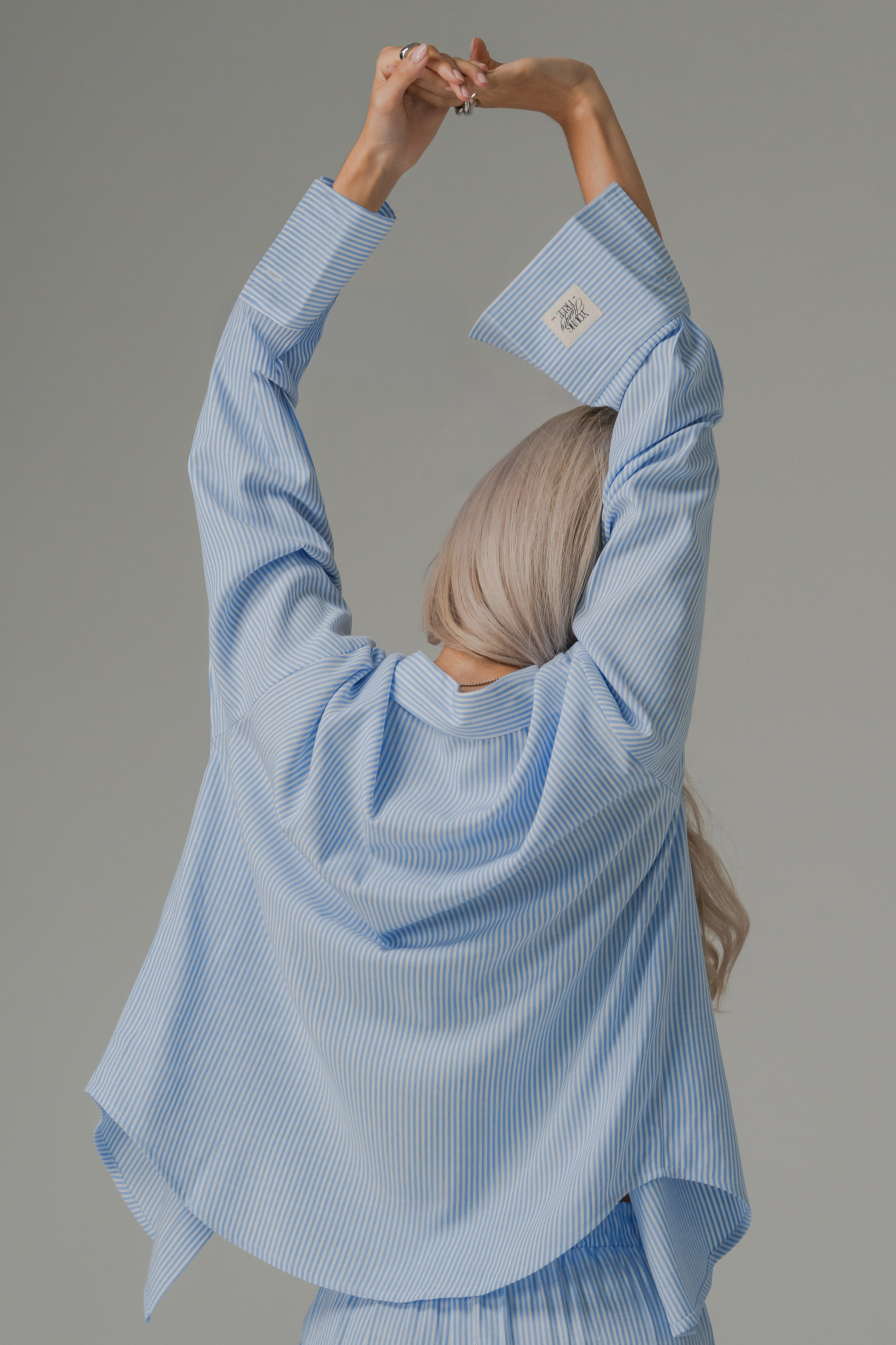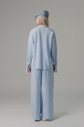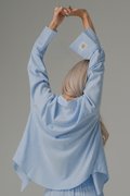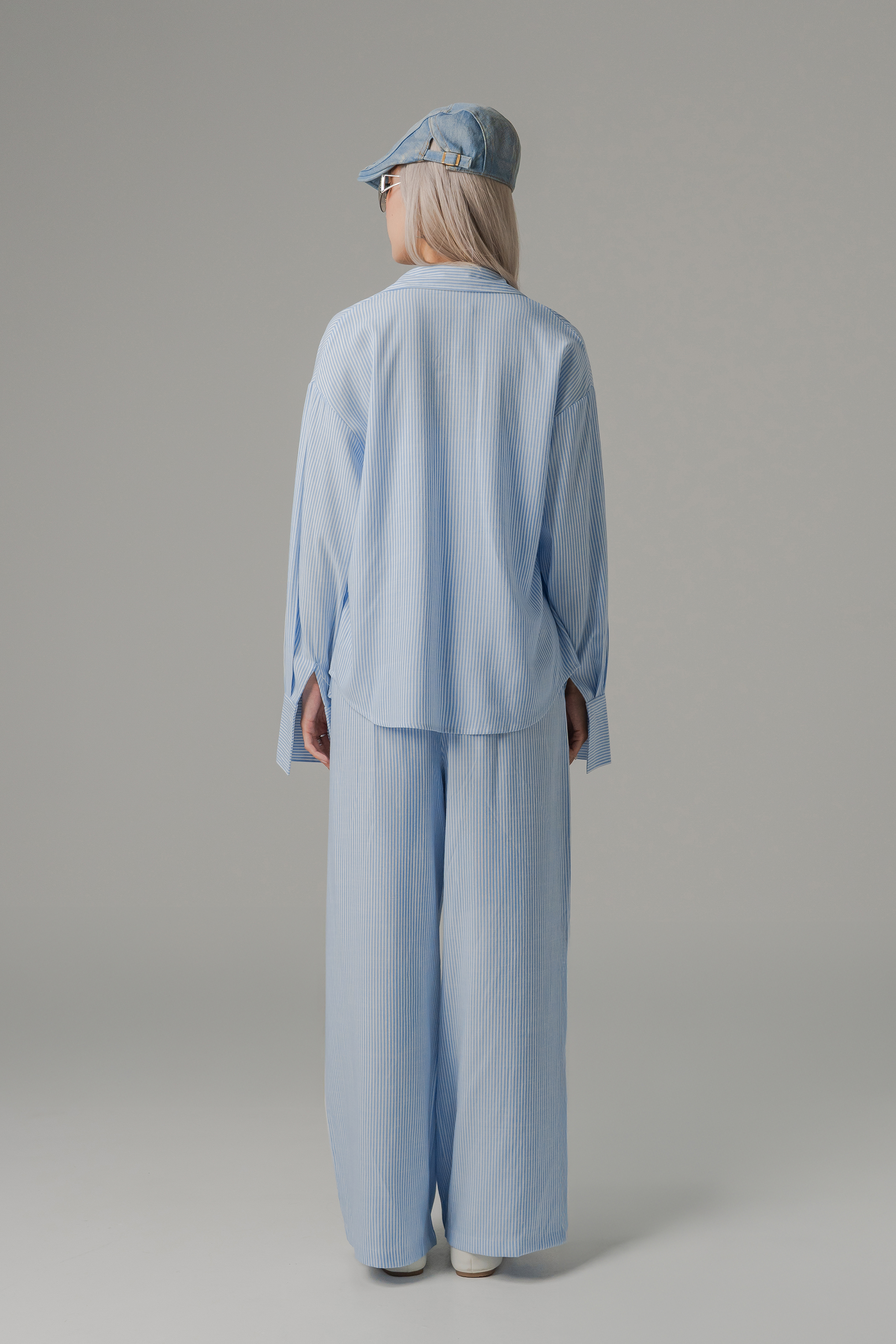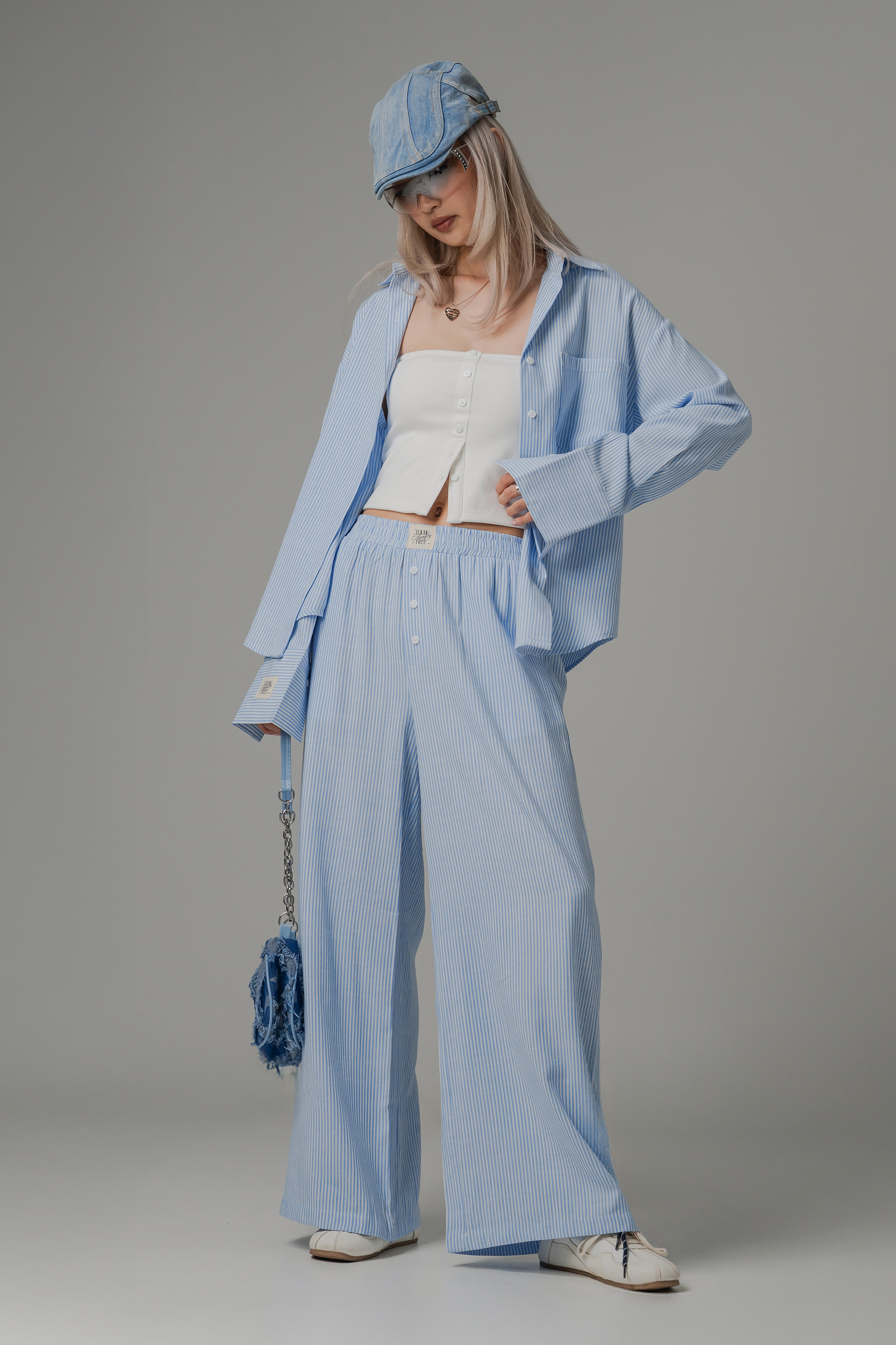 Sedate Lazy Oversized Shirt Button Top in Baby Blue Stripes
