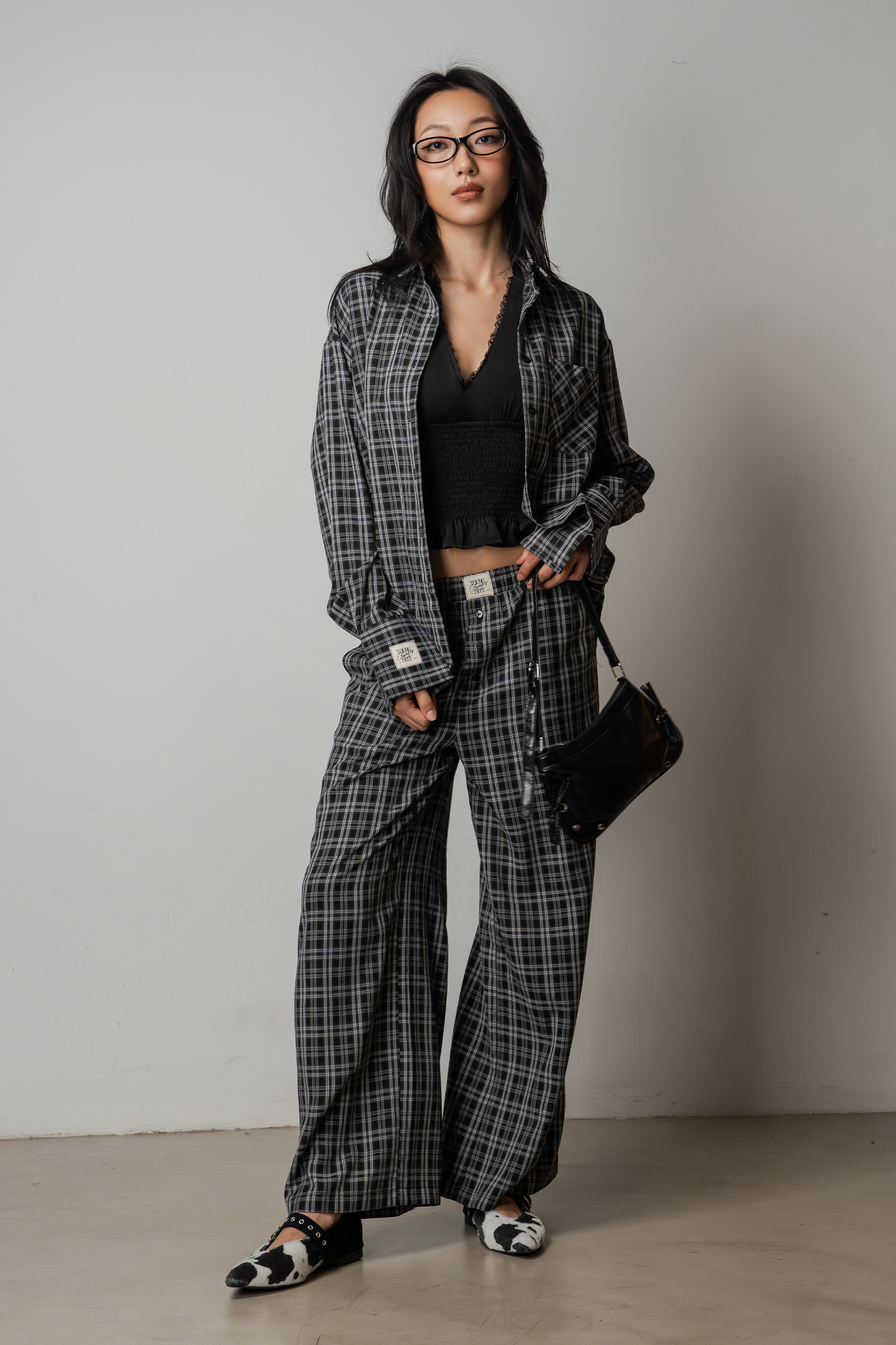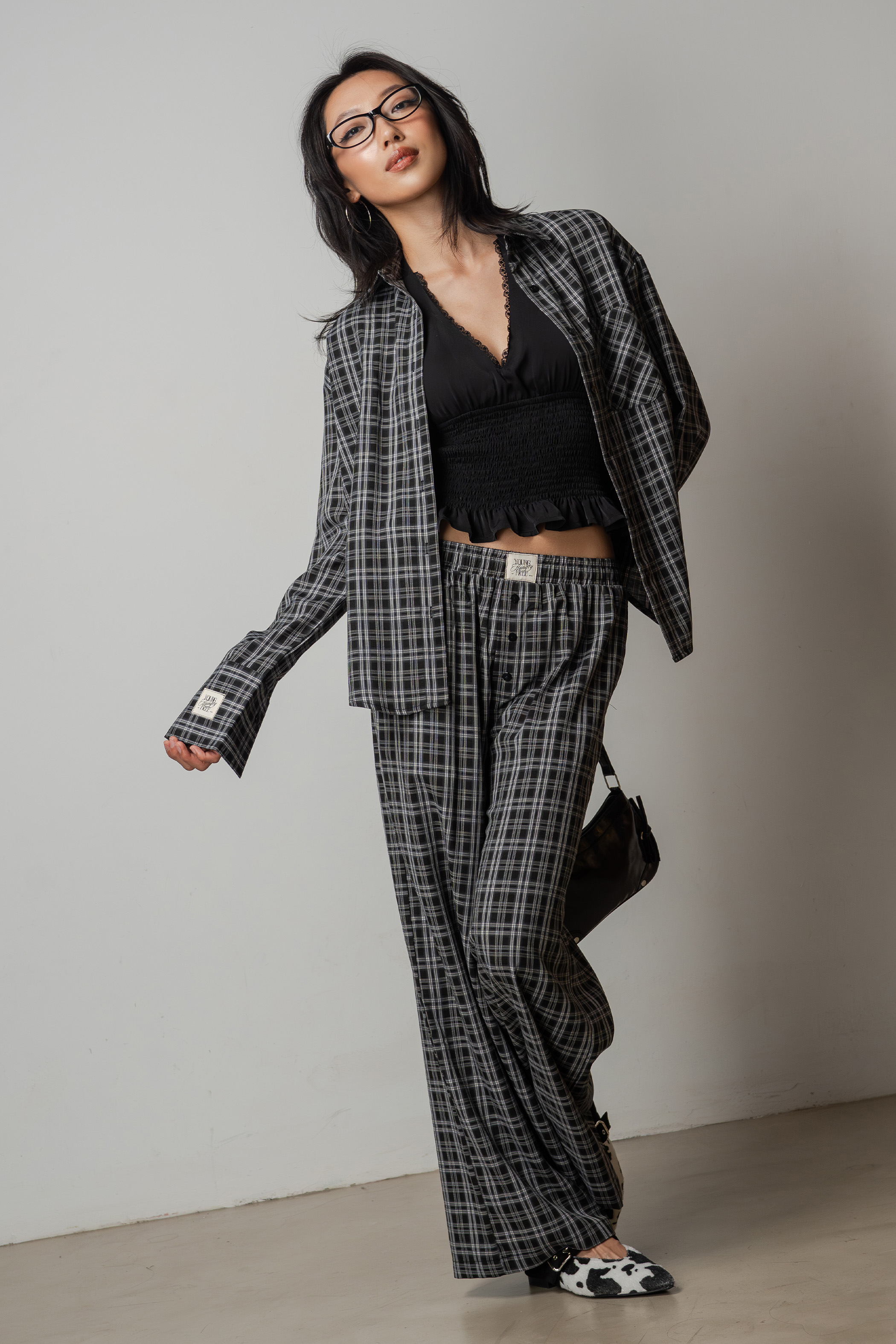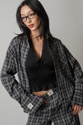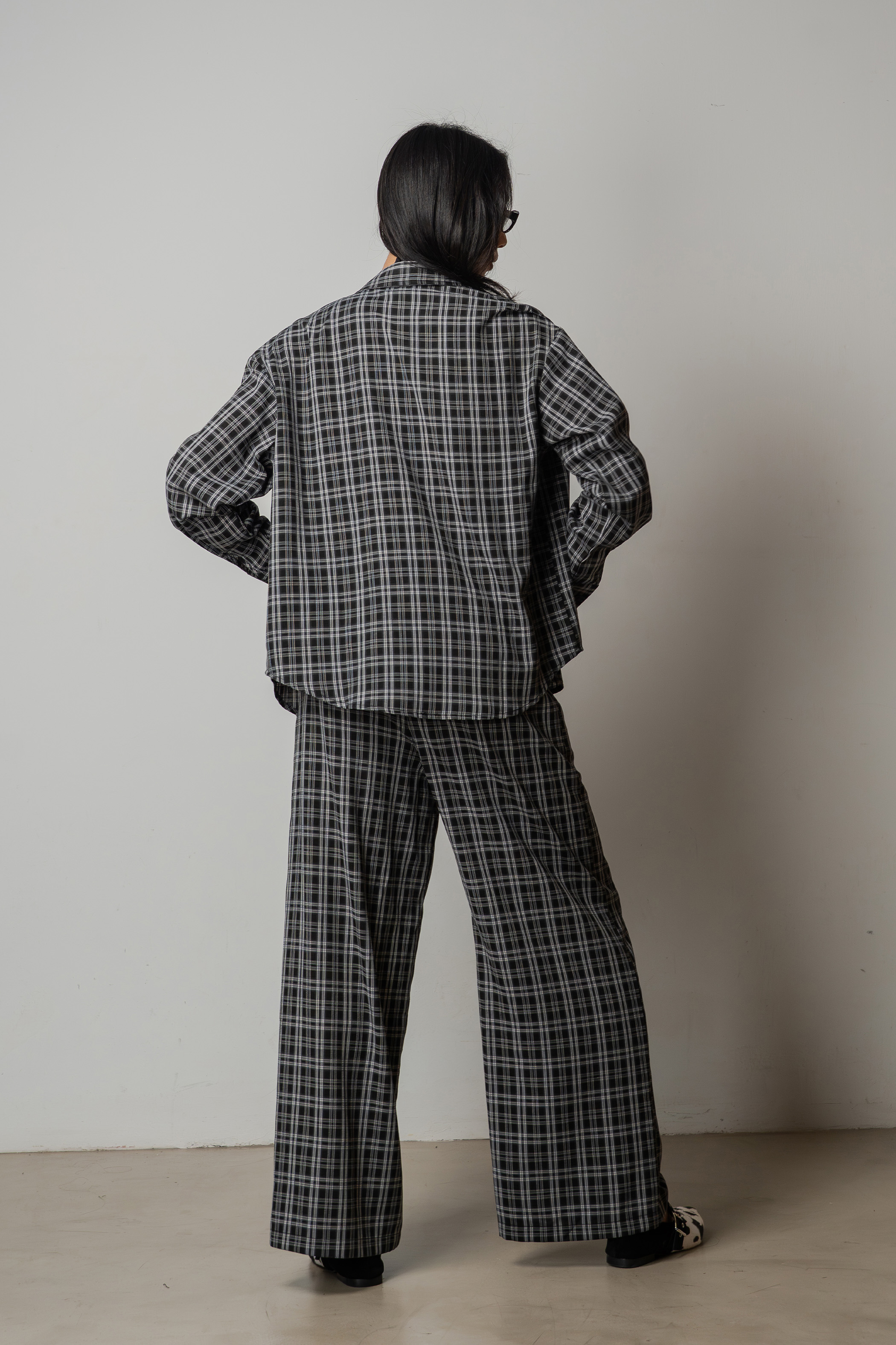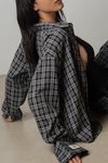 Sedate Lazy Oversized Shirt Button Top in Faded Black Checkered