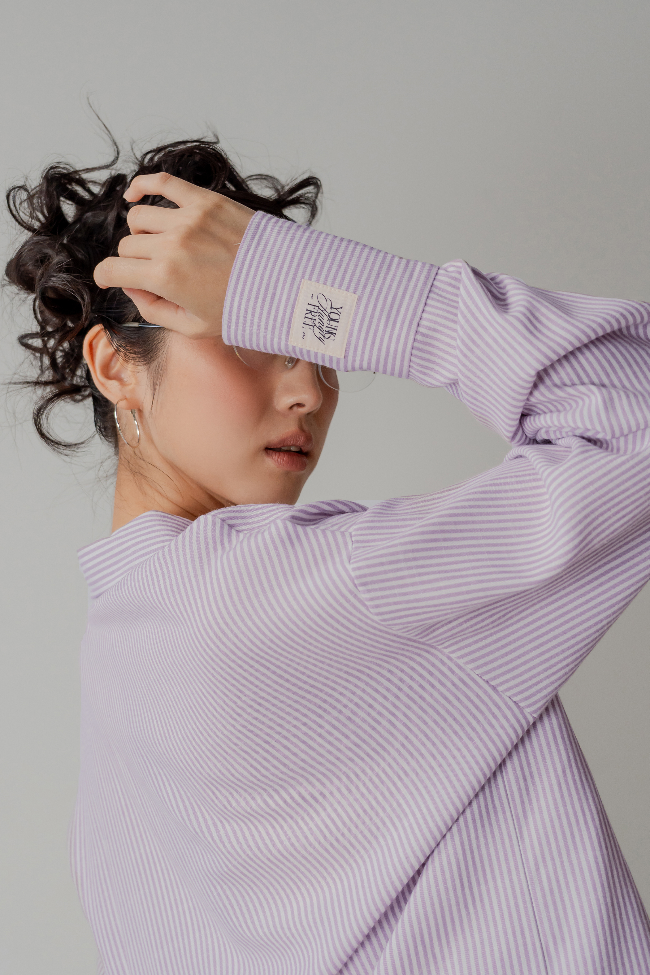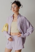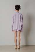Sedate Lazy Oversized Shirt Button Top in Lavender Stripes