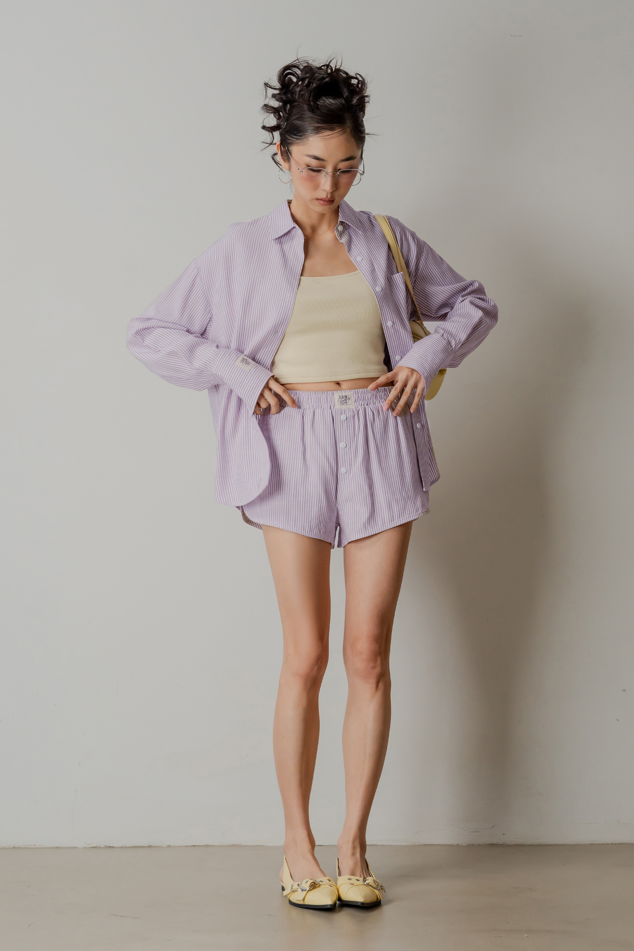 Easy and unhurried, the Sedate Lazy Oversized Shirt Button Top features a loose, drapey silhouette with clean stripes, a collared neckline, and full button-front detailing. Now back with fresh stripe options, it blends everyday comfort with a touch of polish. Pair it with the coordinating pants or shorts for a relaxed, cohesive set.