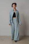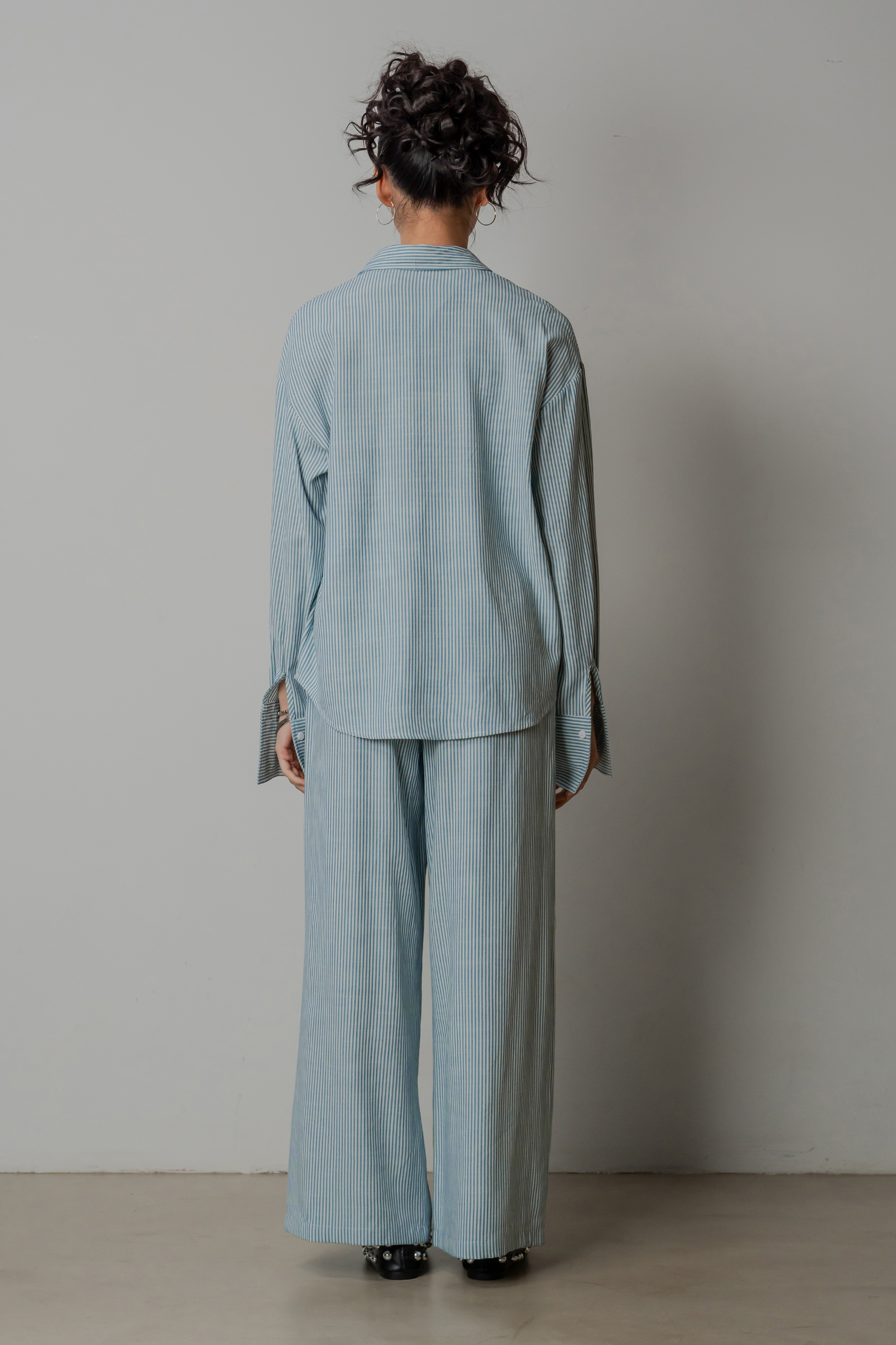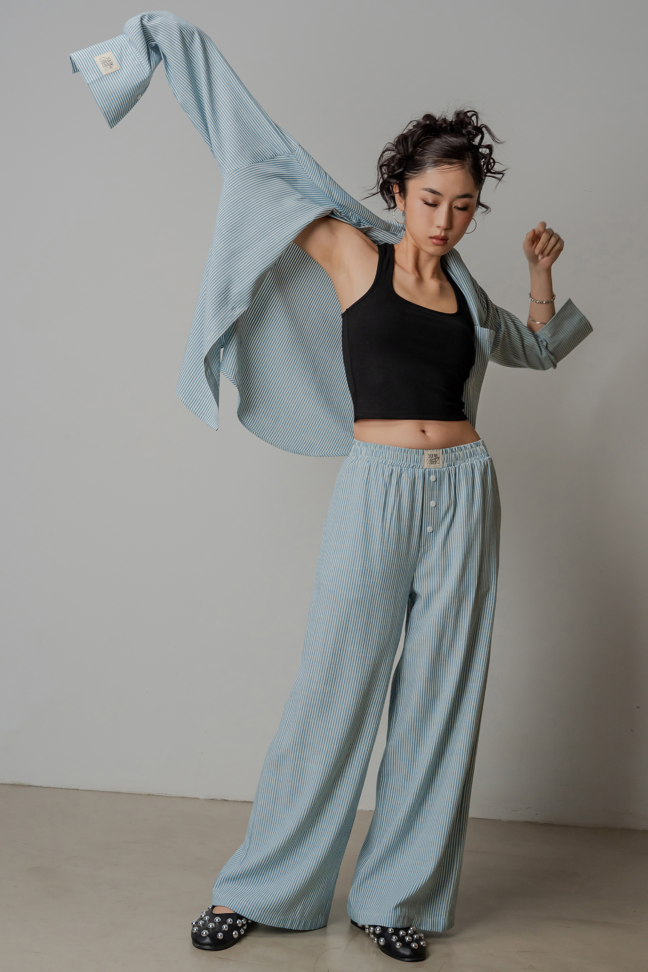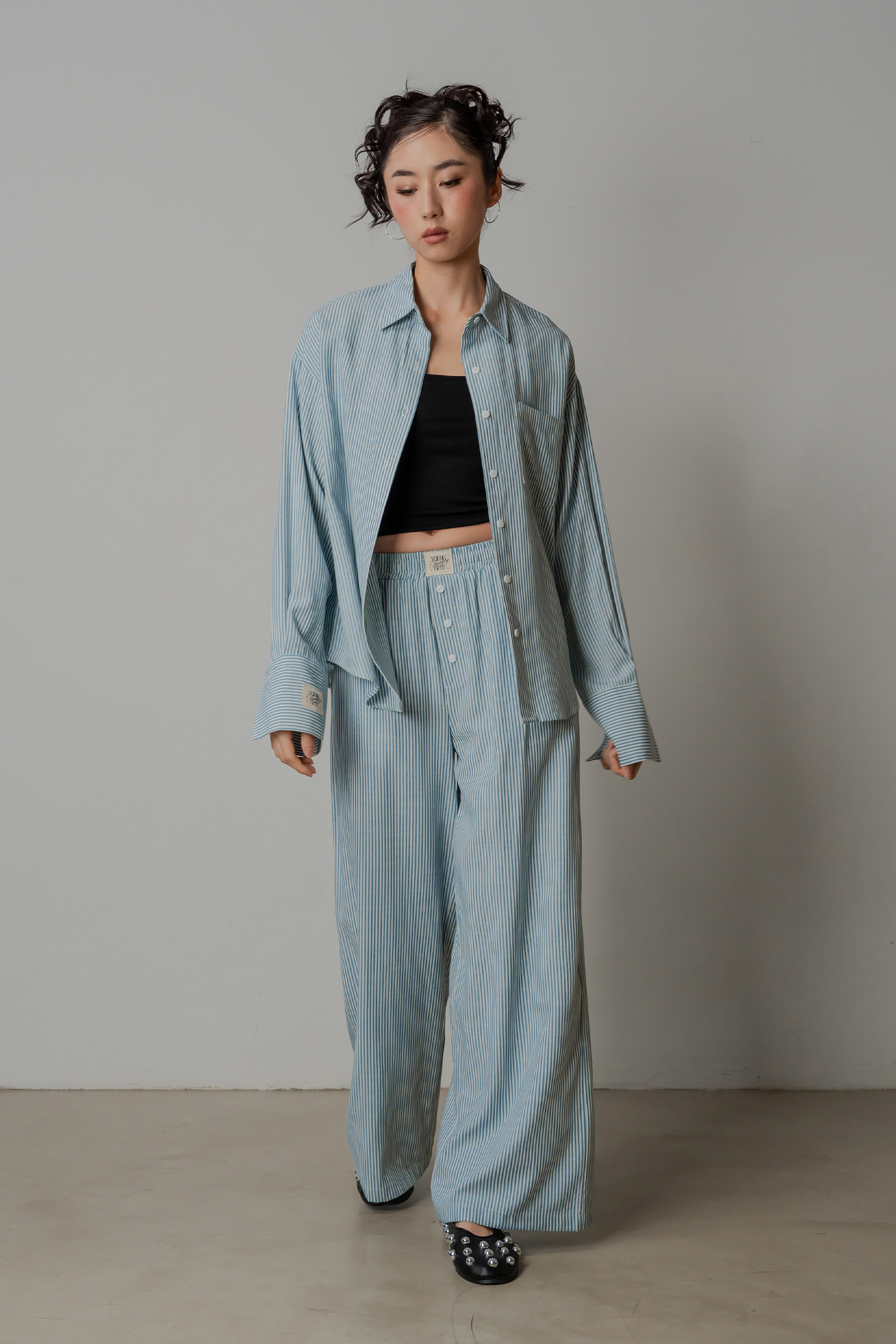 Easy and unhurried, the Sedate Lazy Oversized Shirt Button Top features a loose, drapey silhouette with clean stripes, a collared neckline, and full button-front detailing. Now back with fresh stripe options, it blends everyday comfort with a touch of polish. Pair it with the coordinating pants or shorts for a relaxed, cohesive set.