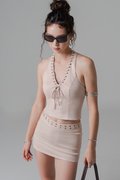 SET: Loop Hole Eyelet Suede Halter Top + Key Hold Eyelet Suede Skirt