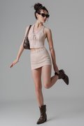 The Key Hold Eyelet Suede Skirt brings attitude in every stitch. Cut in a fitted mini silhouette, it hugs just right while showing off a bold eyelet waistline that ties back to the matching Loop Hole Eyelet Suede Halter Top. The suede finish adds that rugged, worn-in texture — soft to the touch but tough in energy. Worn together, the set hits that sweet spot between street grit and effortless cool.