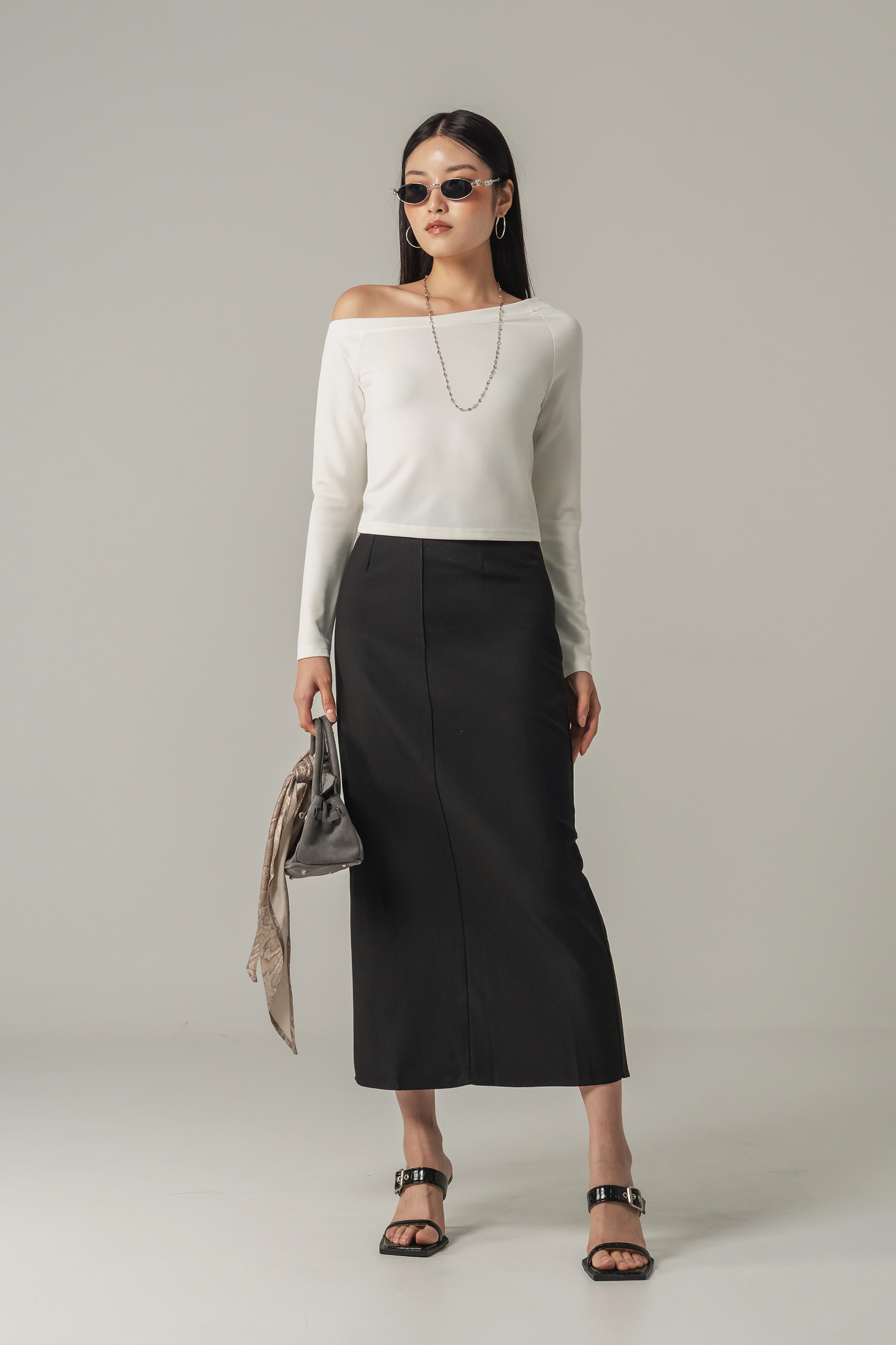 The Shrug Off Relax Top redefines everyday ease with its wide neckline and soft, slouchy fit. Designed to be worn off-shoulder, it flatters effortlessly while keeping things casual. Cropped with long sleeves, it is the perfect blend of comfort and quiet confidence.