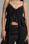 Tides Ruffle Layered Top in Black