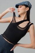 Twice Mesh Layered Padded Top in Black