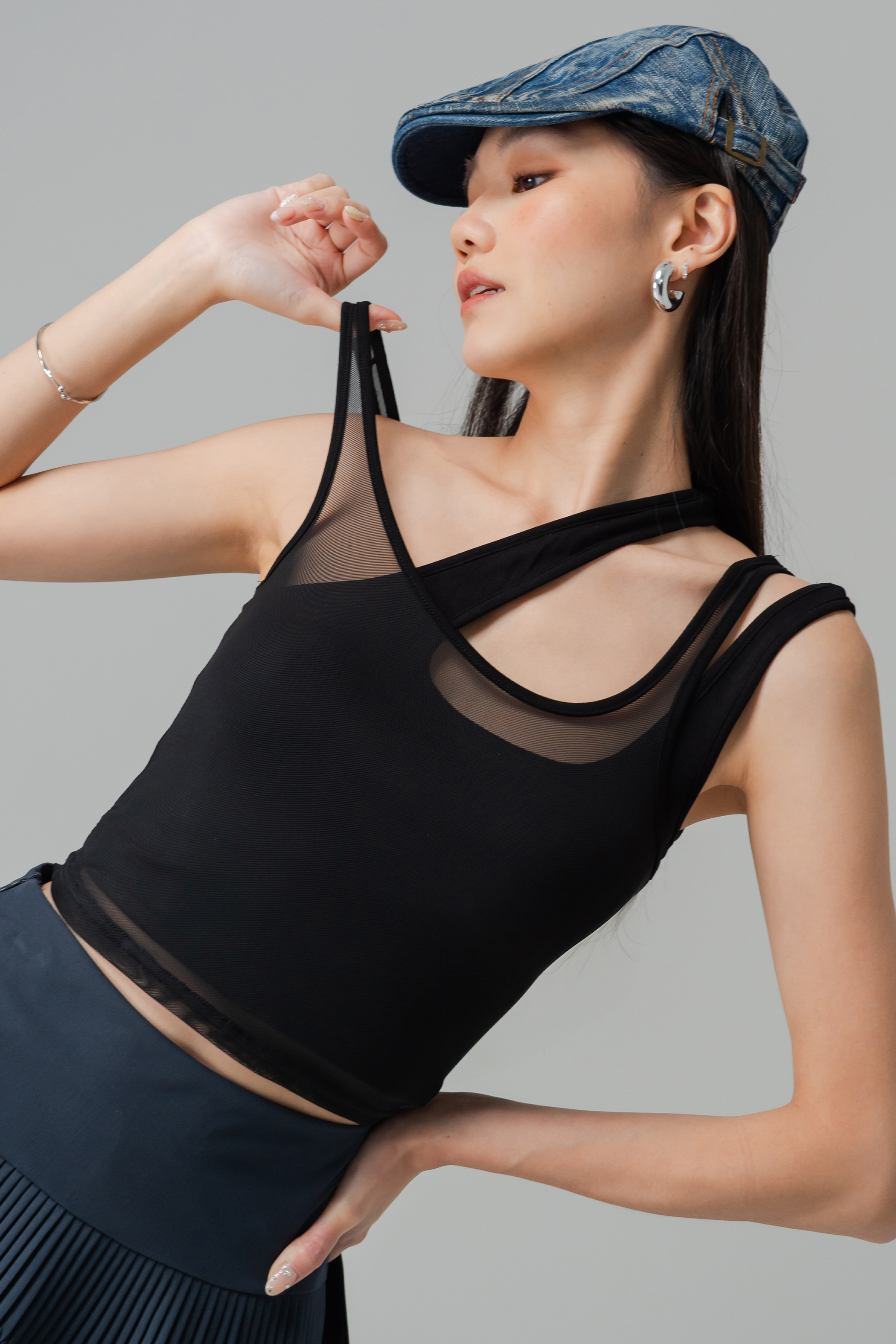 Layered and light, the Twice Mesh Layered Padded Top brings a fresh twist to everyday basics. The sheer mesh overlay adds dimension and movement, while the padded base keeps it comfortable and fuss-free. Sleeveless and relaxed, it’s perfect for casual days that still call for style with subtle flair.