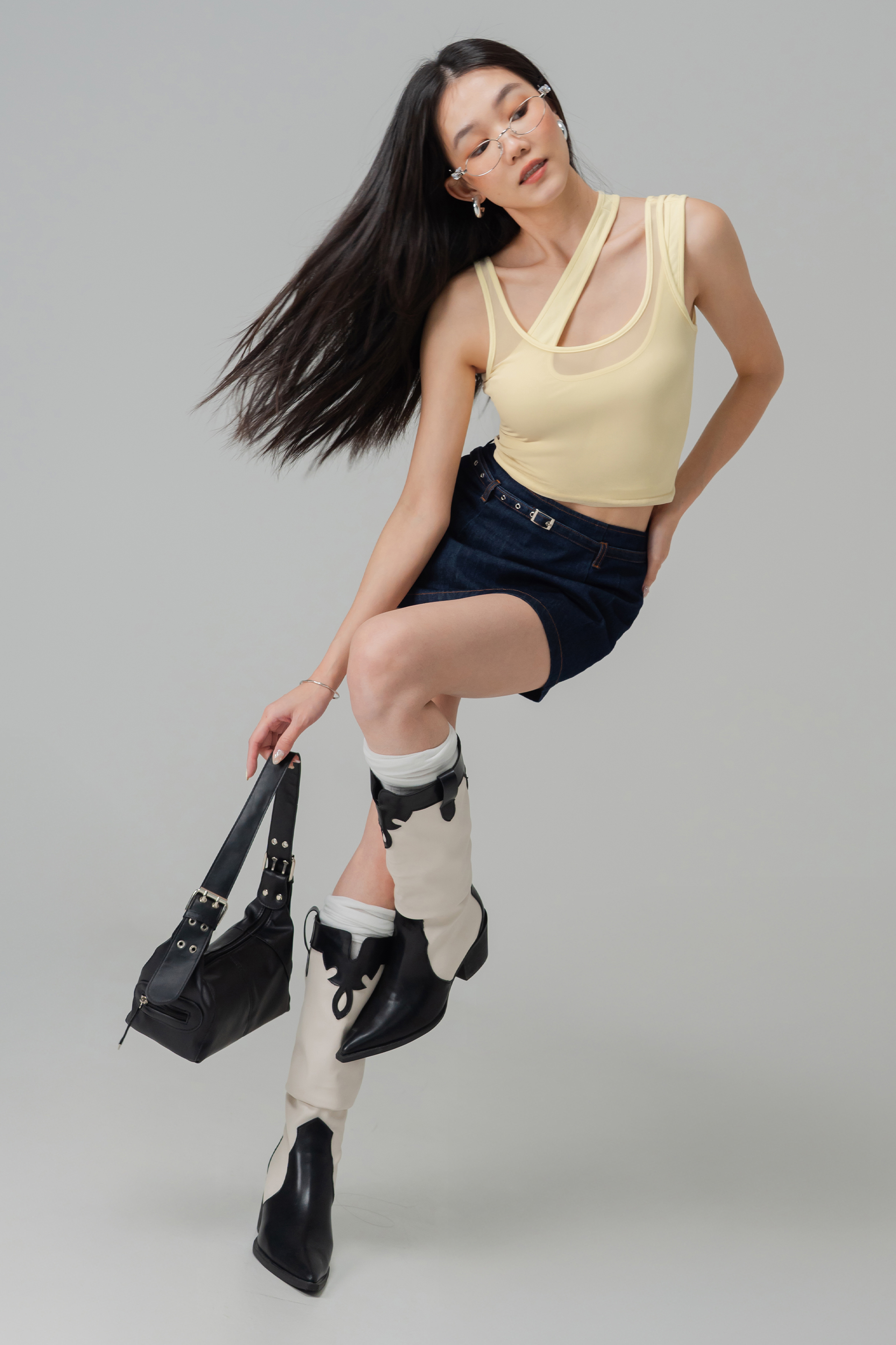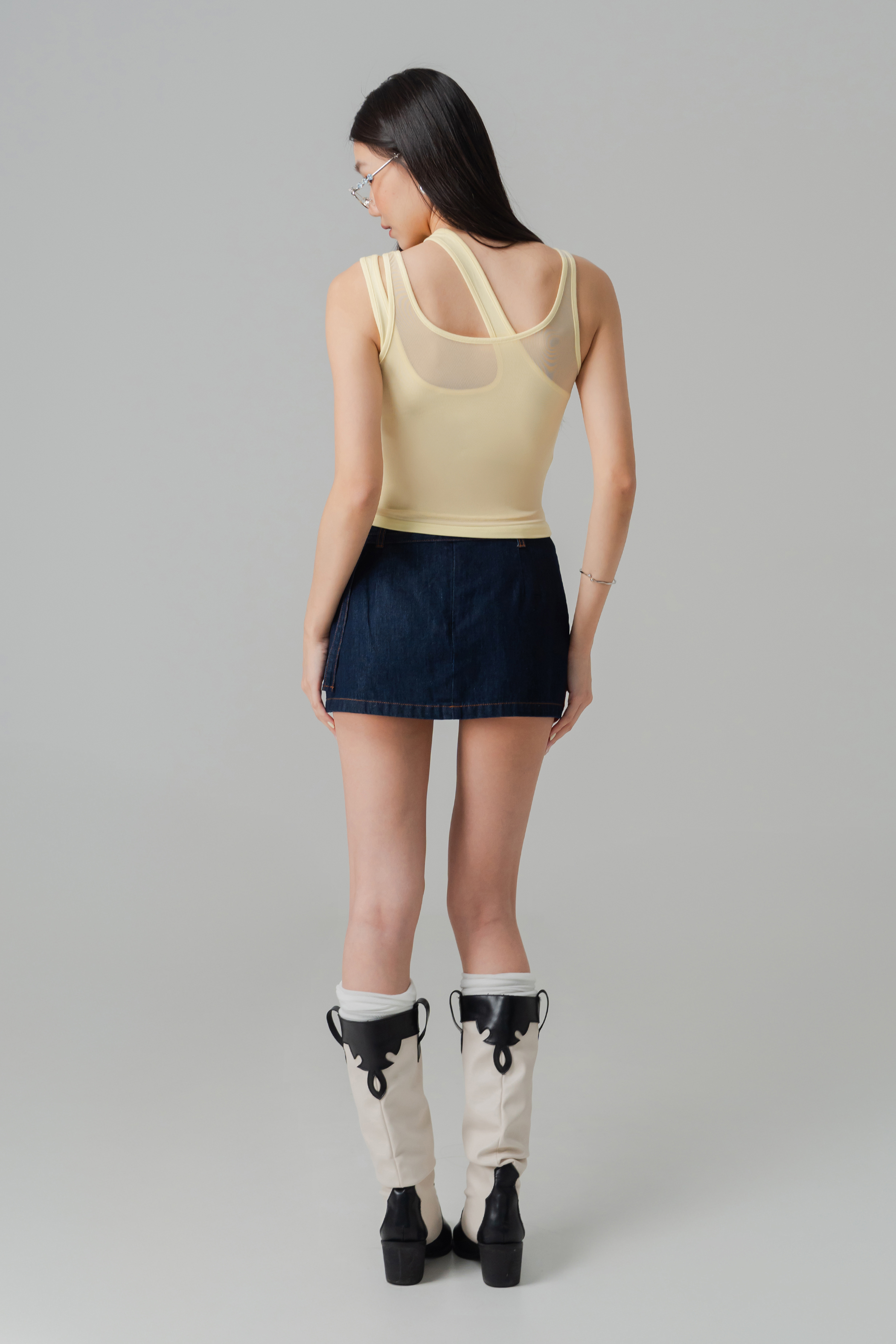 Twice Mesh Layered Padded Top in Light Yellow