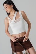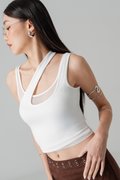 Twice Mesh Layered Padded Top in White