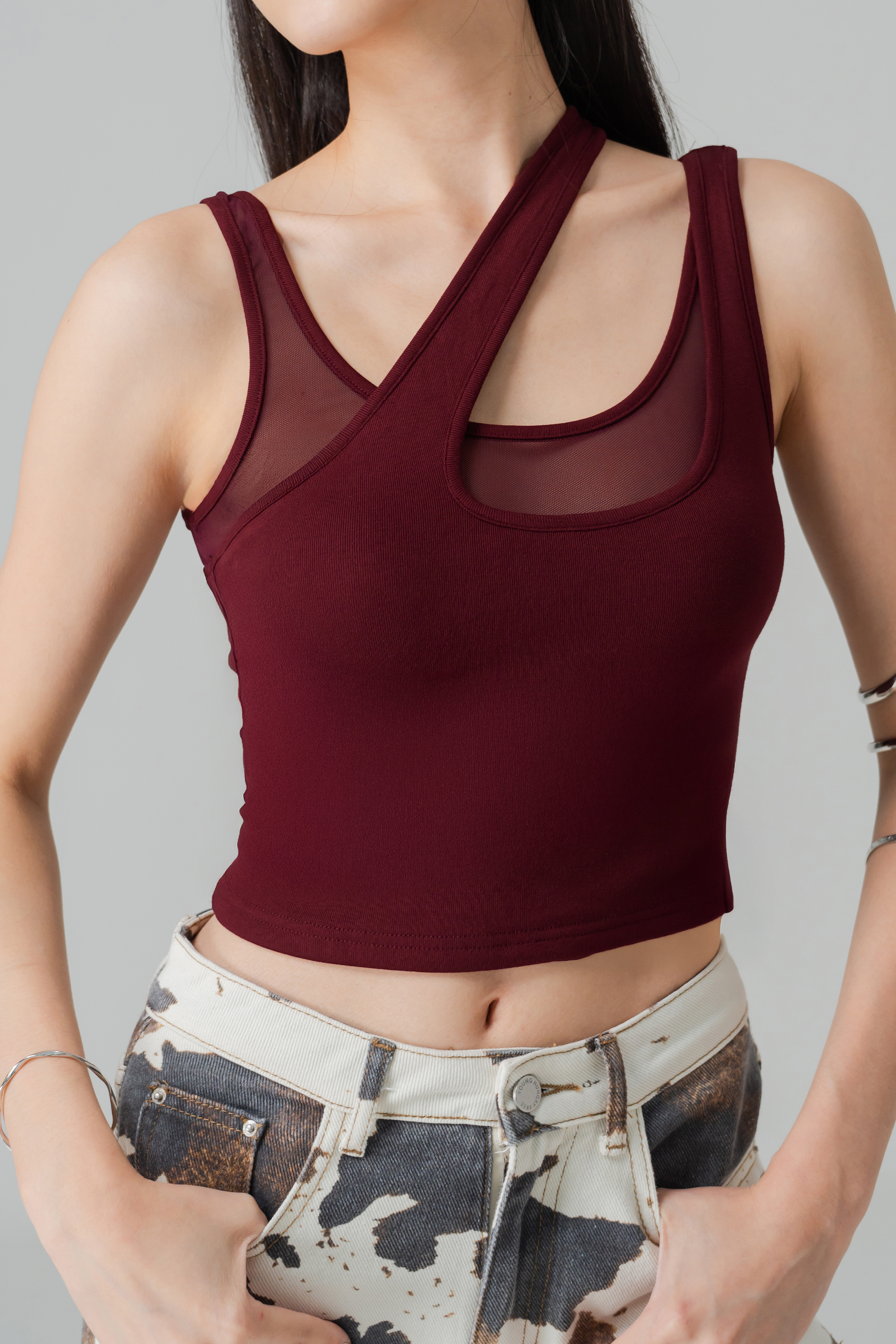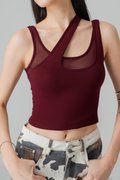Twice Mesh Layered Padded Top in Wine Red