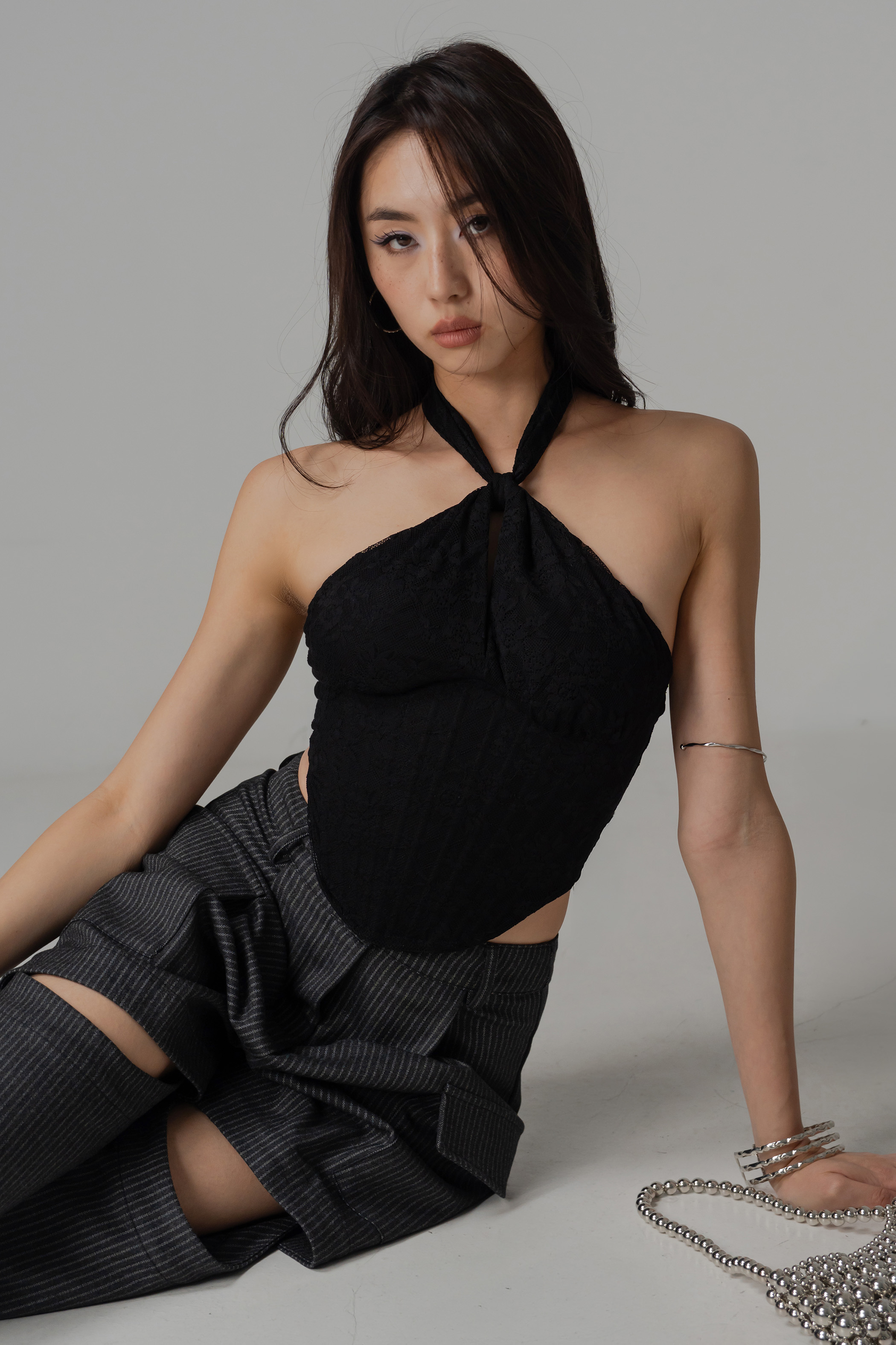 The Twiddle Lace Halter Corset Top is a romantic essential designed to flatter with ease. Featuring a fitted silhouette with a structured corset design, it shapes the body beautifully while the lace detailing adds a soft, feminine charm. The halter neckline and padded bust provide both support and an elegant, sculpted finish.