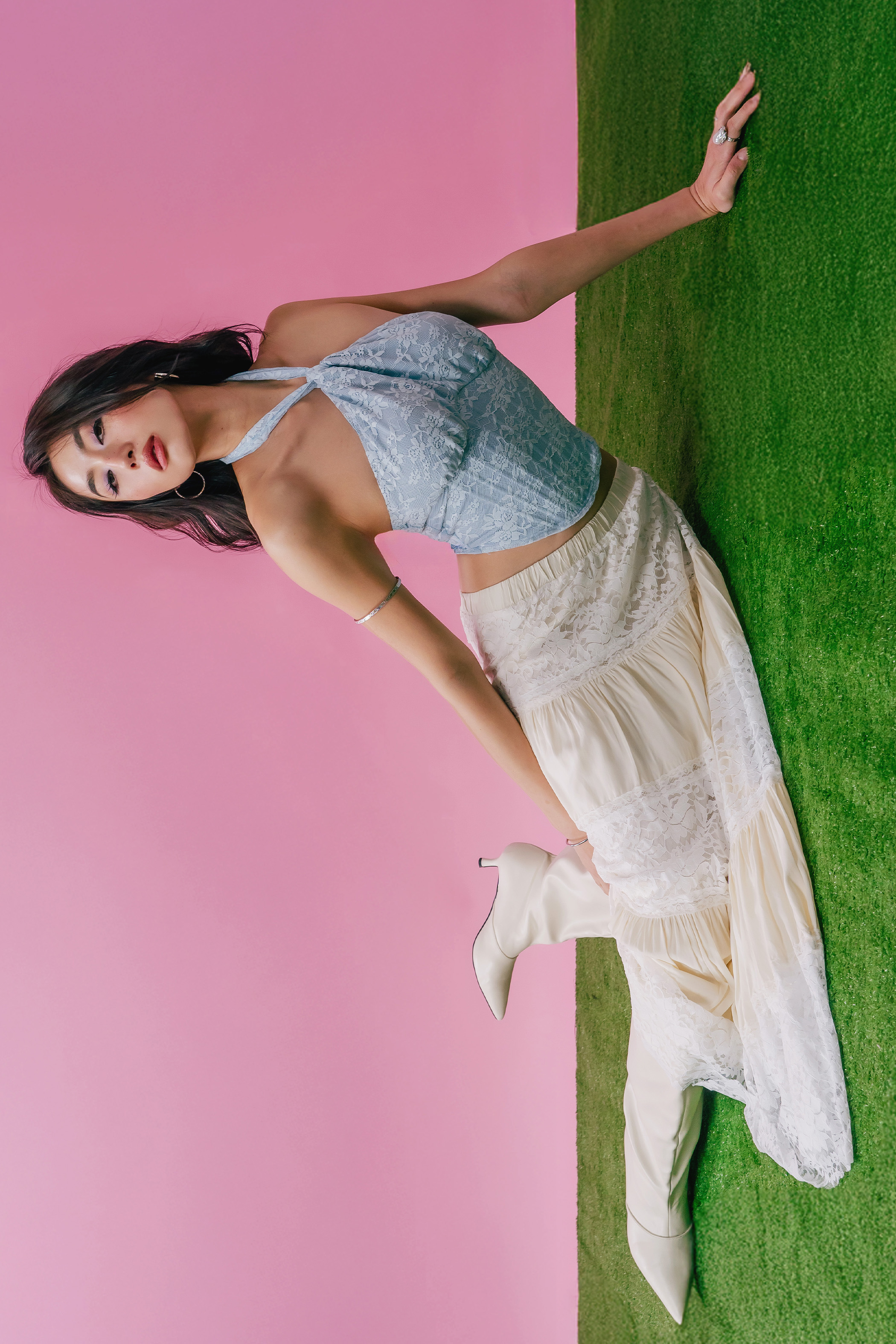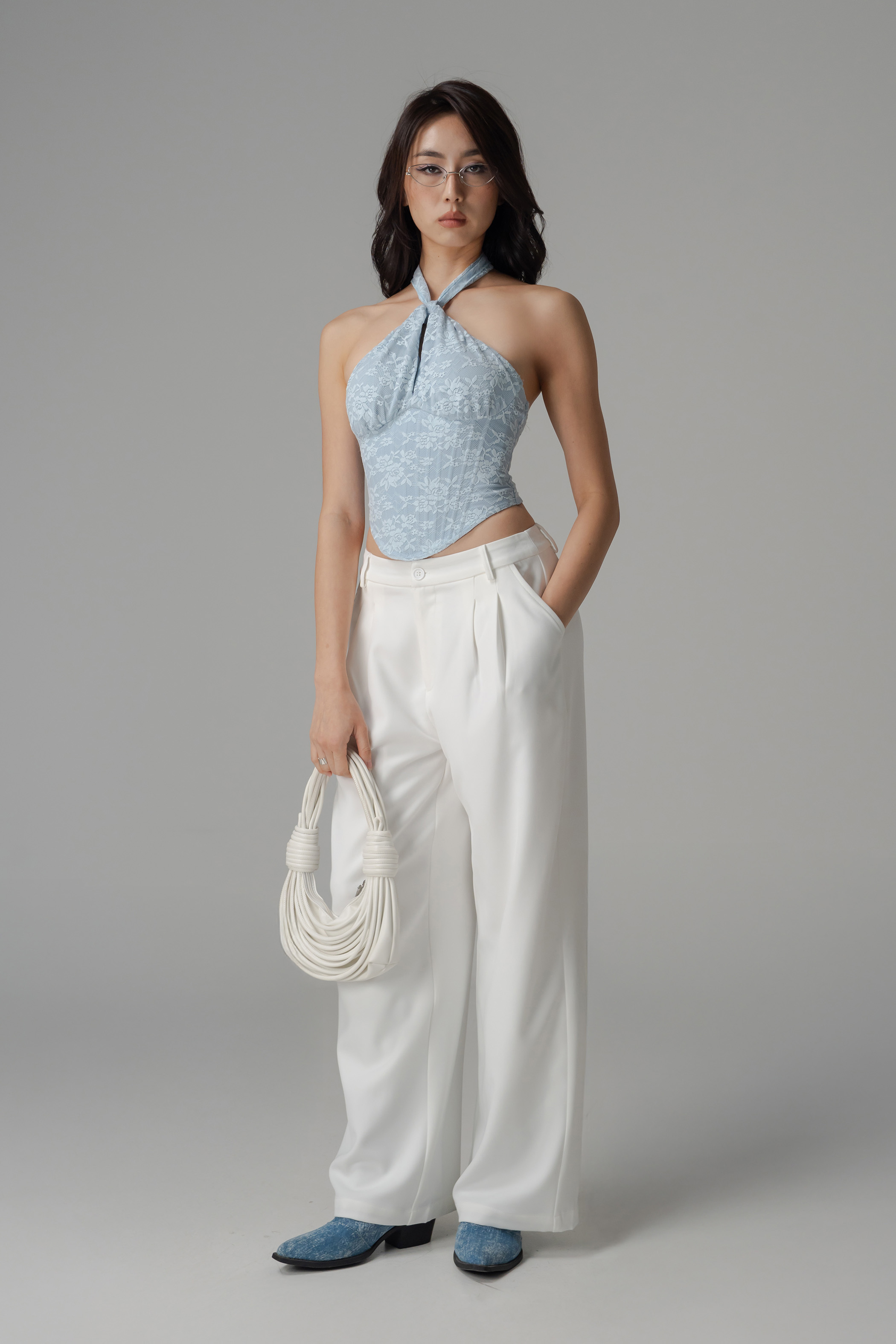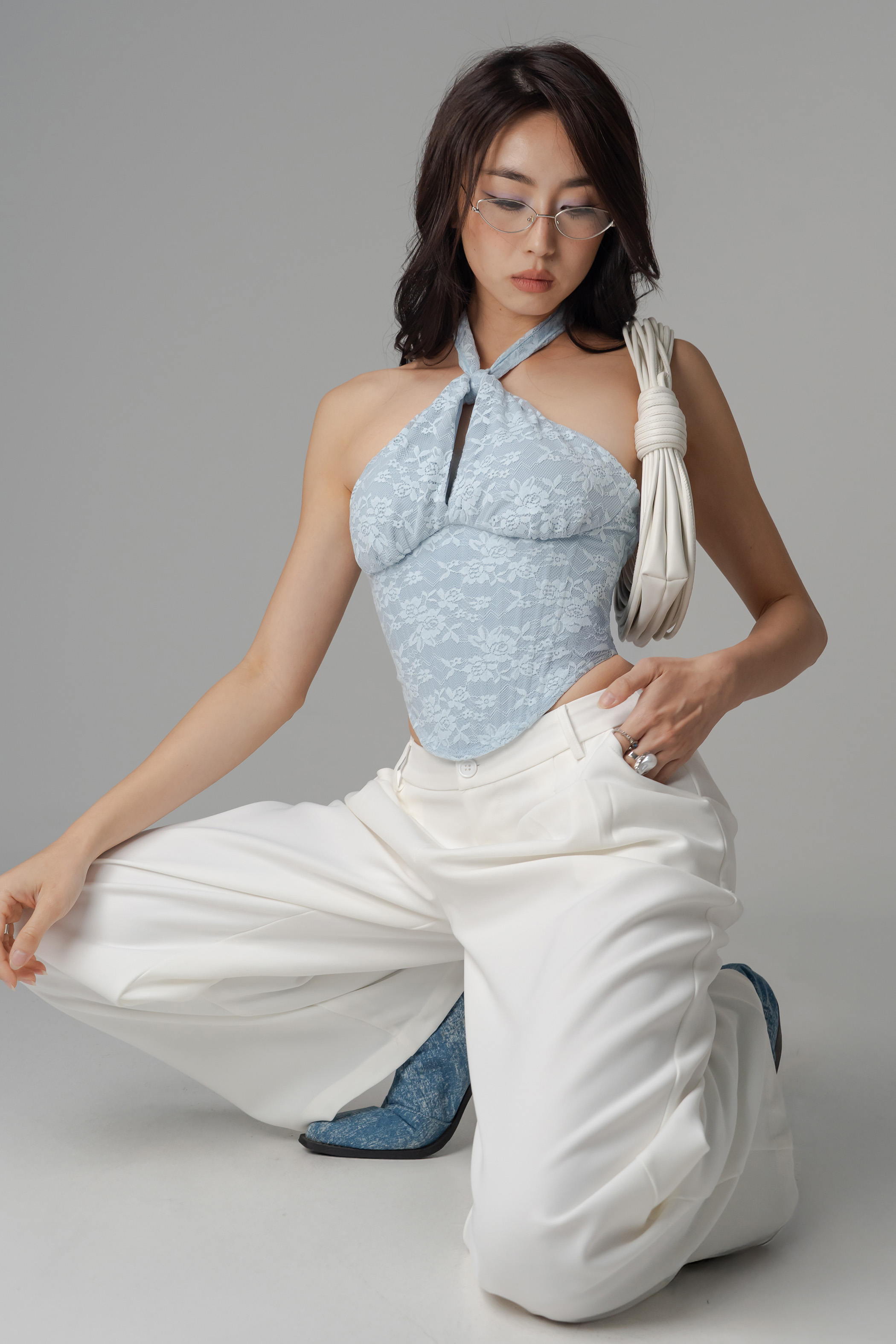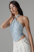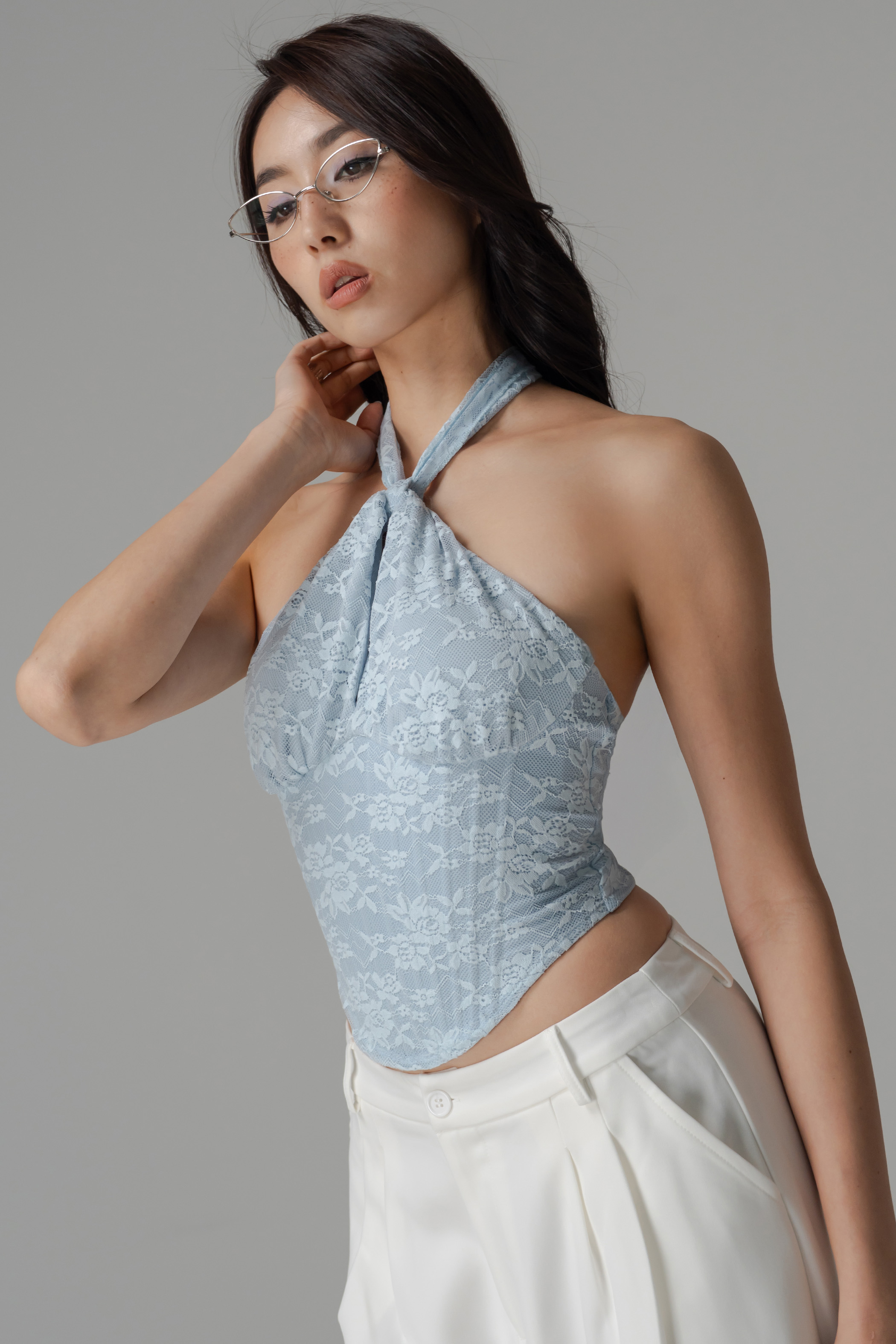 Twiddle Lace Halter Corset Top In Cinderella Blue