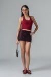 A skirt that whispers secrets in lace and pinstripes, playful yet refined. Its mini length and layered details invite movement, perfect for event where every detail matters. Subtle elegance meets festive allure, creating a look you won’t want to hide.