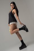 Model Jiwon is UK 6, wearing size S.Height 170cm, Bust 32.5", Waist 24", Hips 35"