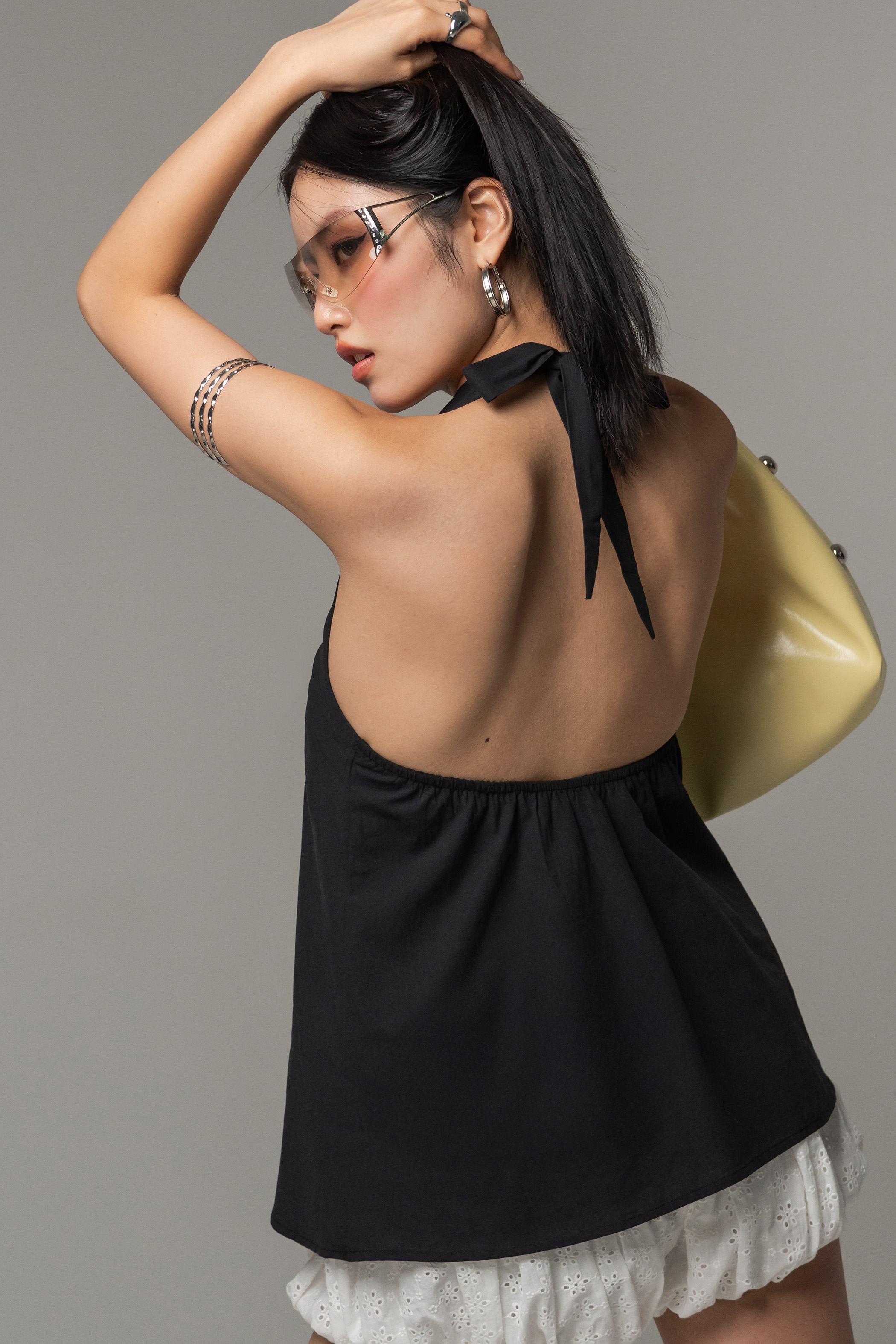 Breezy and refined, the Upon Linen Halter Padded Top is crafted in airy linen with a halter neckline, tie-back detail, and backless cut. Light padding and a soft flare keep it flattering yet relaxed—perfect for sunlit days, casual brunches, or seaside strolls. Pair it with the Weekends Linen Button Shorts for an effortlessly coordinated look.