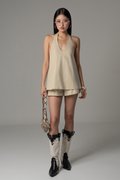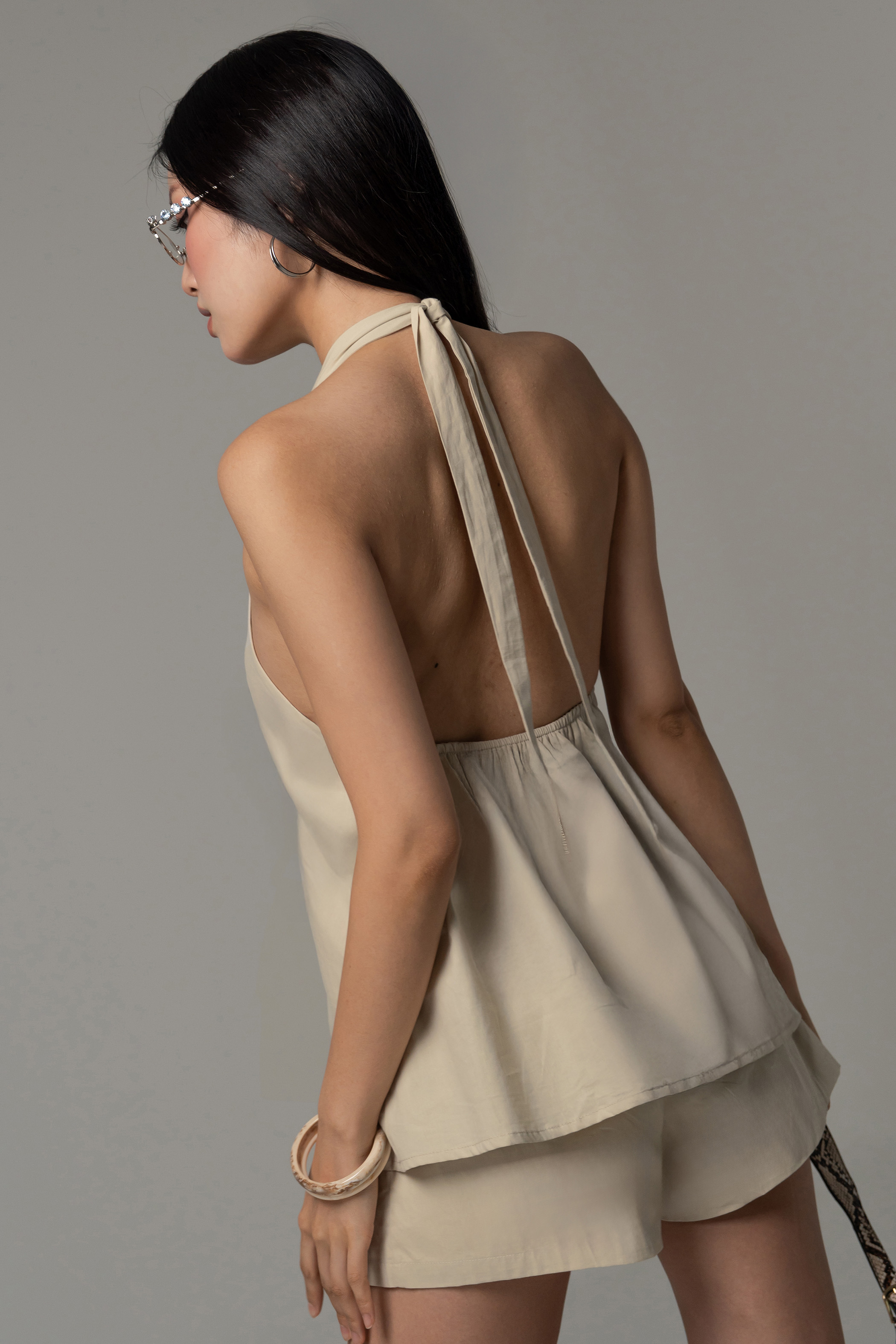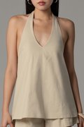 Breezy and refined, the Upon Linen Halter Padded Top is crafted in airy linen with a halter neckline, tie-back detail, and backless cut. Light padding and a soft flare keep it flattering yet relaxed—perfect for sunlit days, casual brunches, or seaside strolls. Pair it with the Weekends Linen Button Shorts for an effortlessly coordinated look.