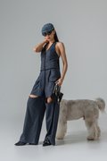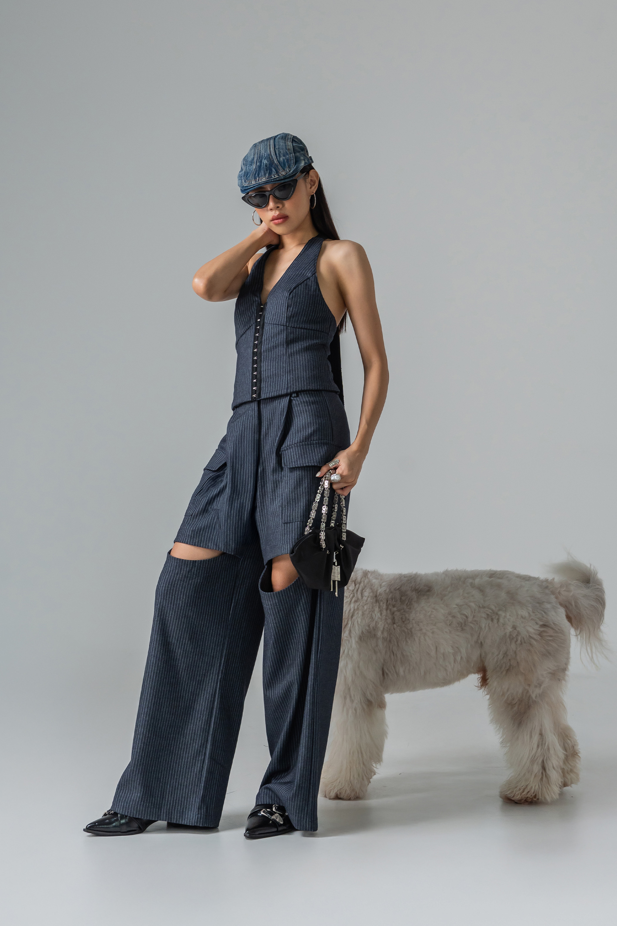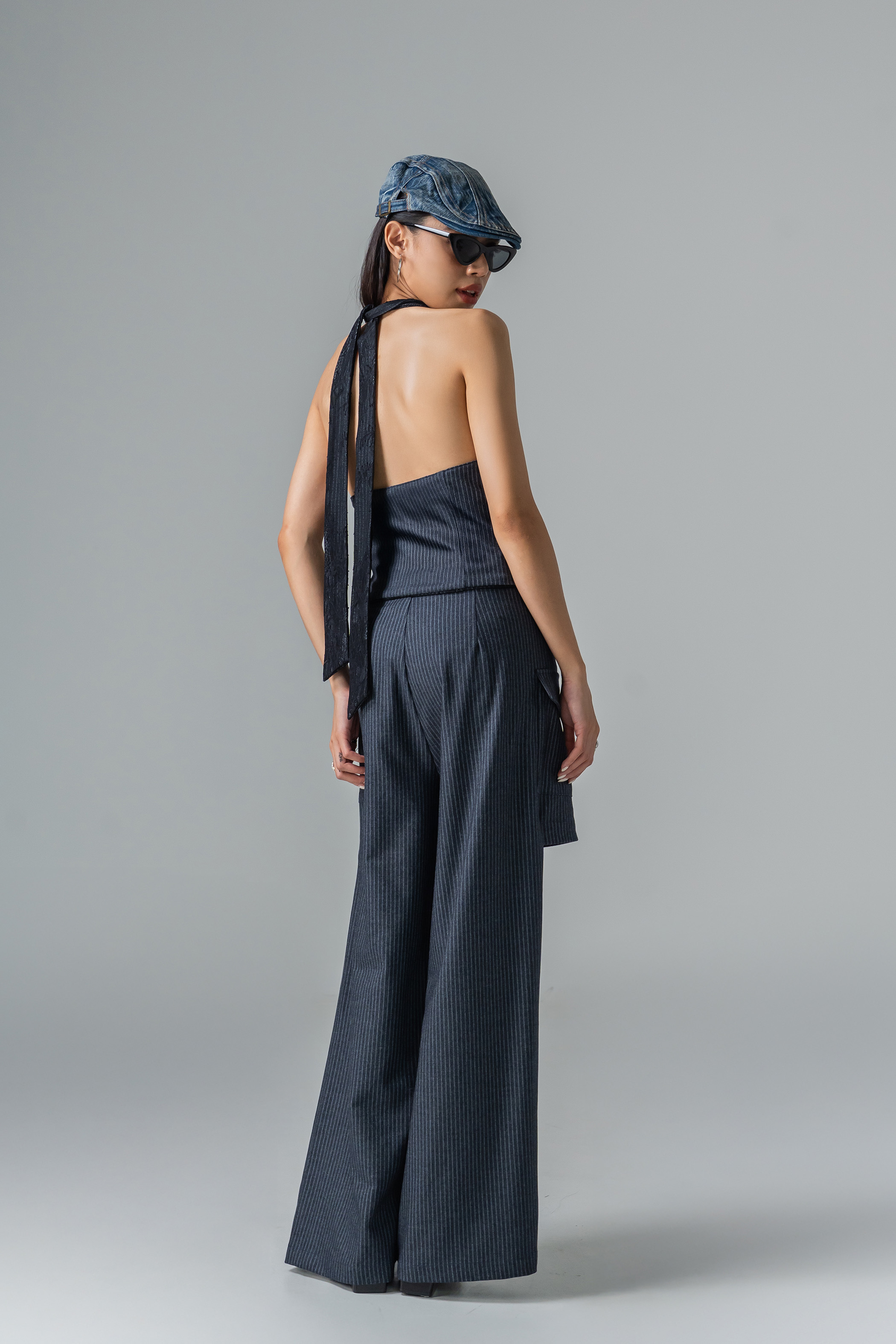A top that shifts with your mood, designed to be worn inside out for two distinct looks — one in sleek pinstripe, the other layered with delicate lace. With padding and subtle structure, it shapes your silhouette with quiet confidence. A versatile piece that turns simple moments into something unforgettable.