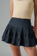 Wake Up Pleated Tiered Skirt in Navy