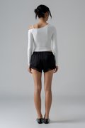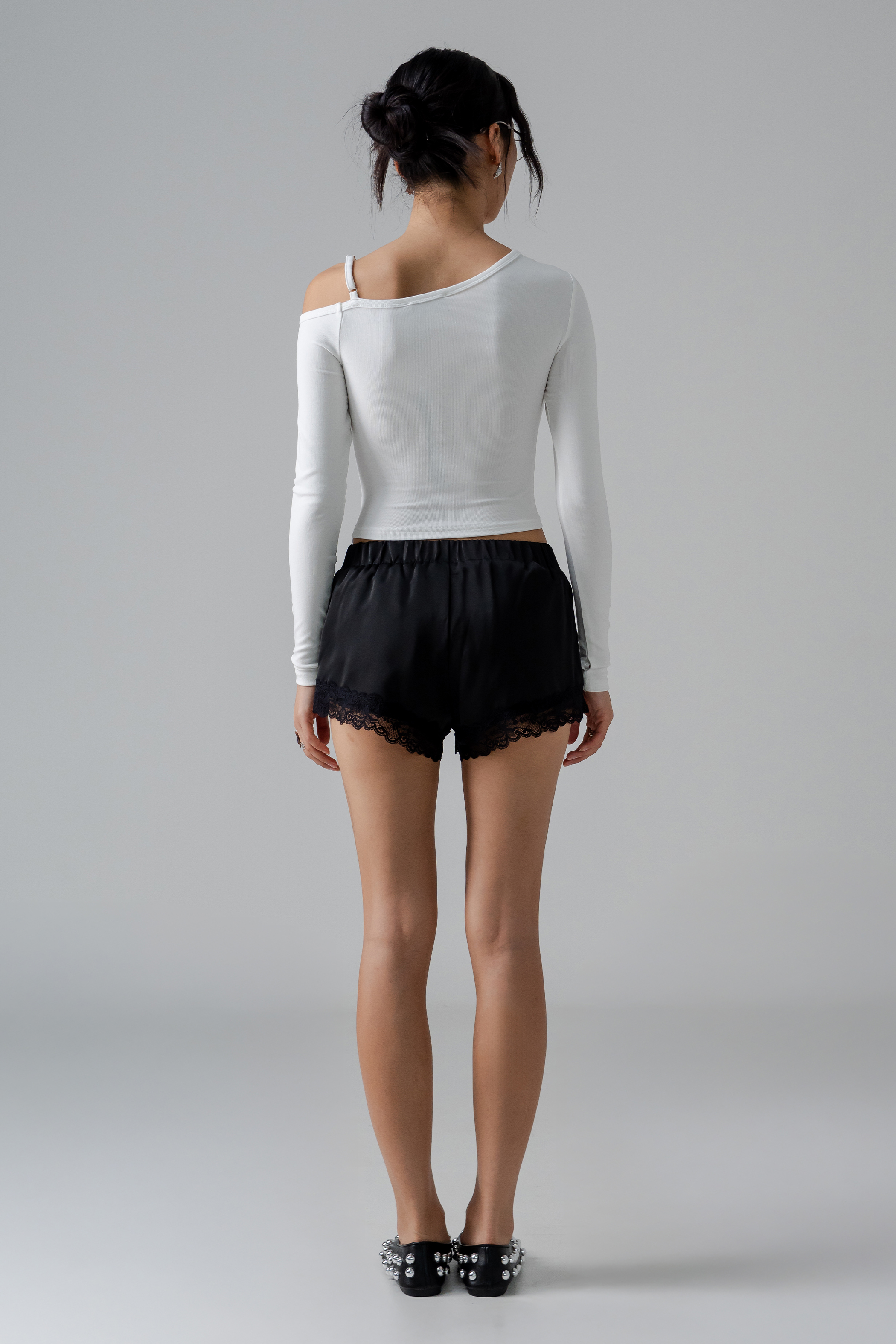Airy lace meets glossy satin in the Whisper Lounge Lace Shorts, with a flared mini cut and rubber waist for relaxed, effortless comfort. Flowing and feminine, they bring a hint of luxe to everyday loungewear. Ideal for co-ords or as a quietly daring statement.