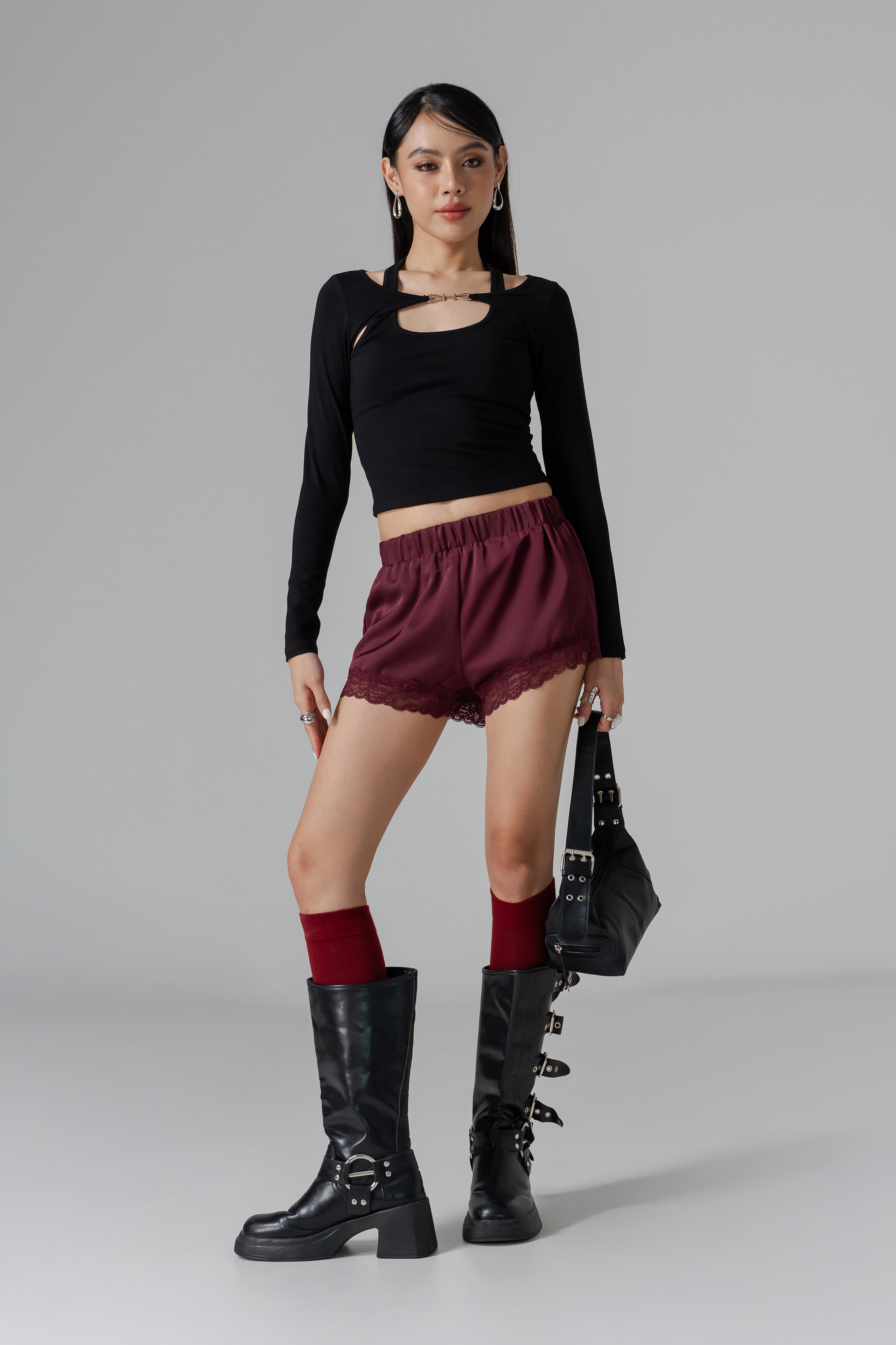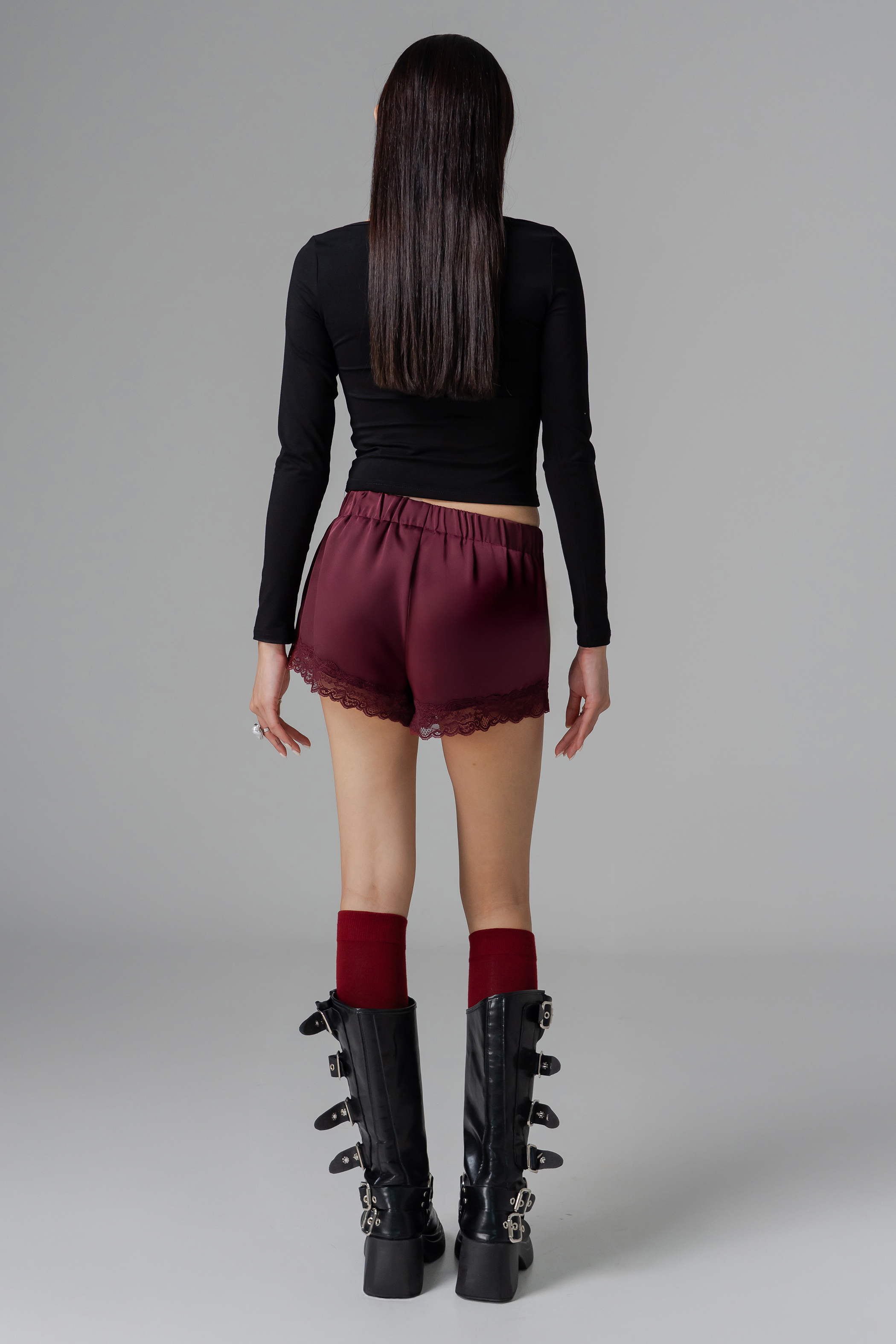 Whisper Lounge Lace Shorts in Sangria Red