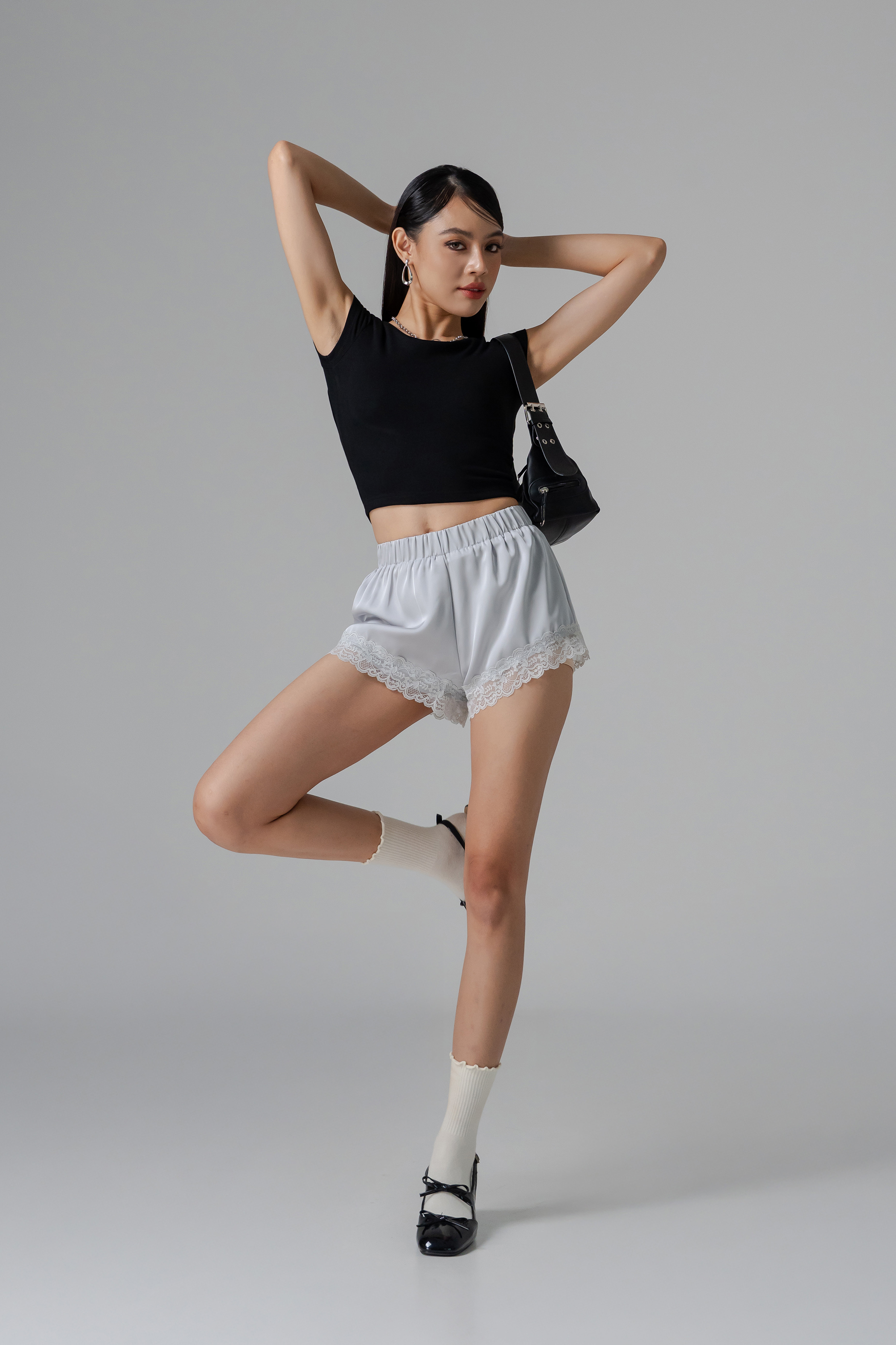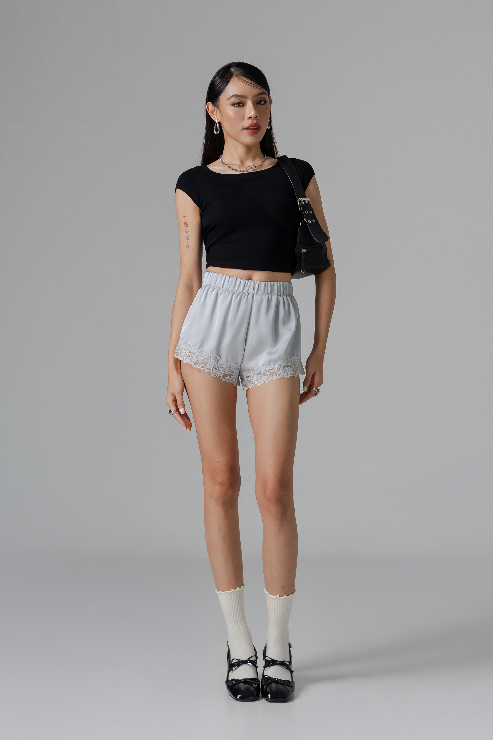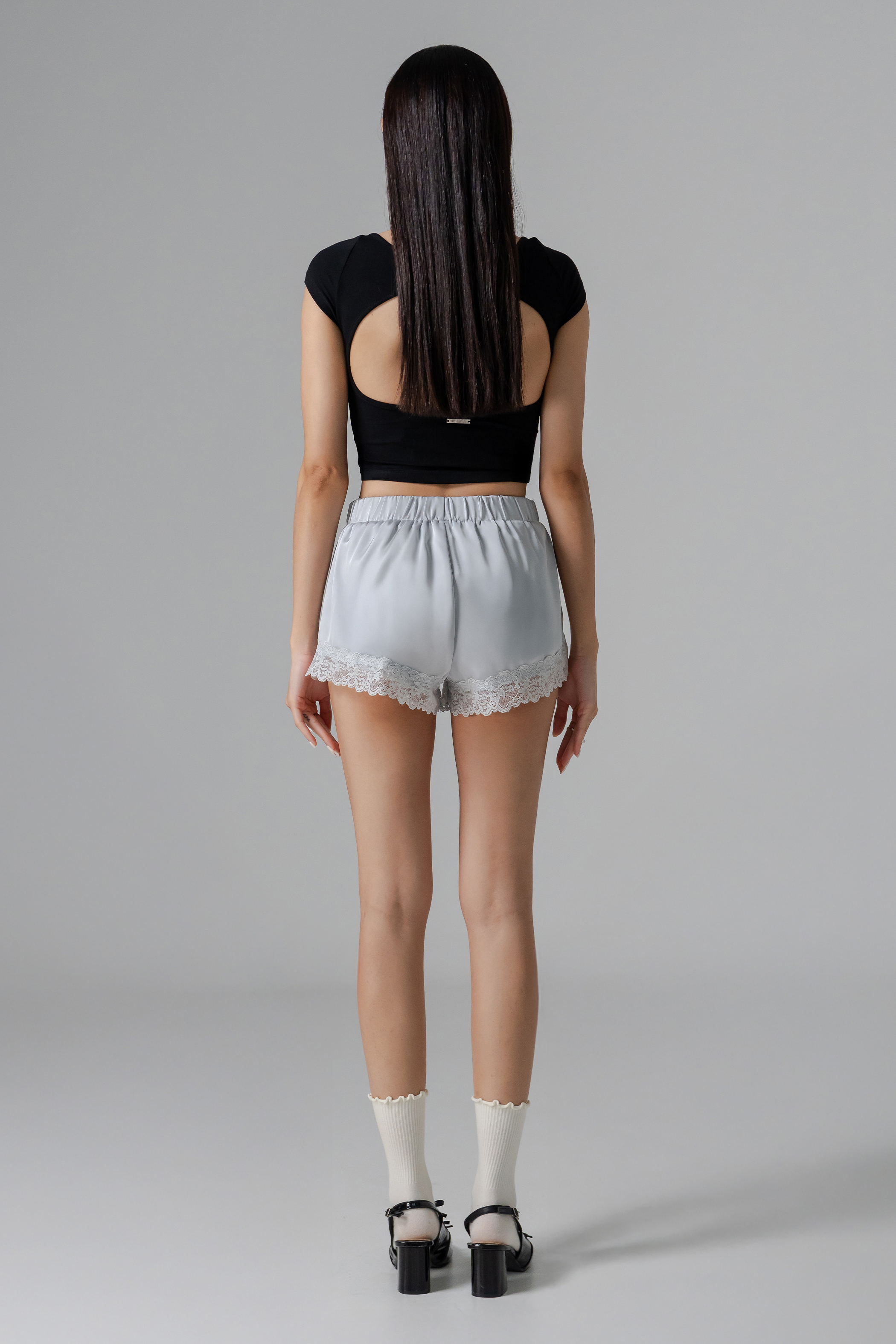 Airy lace meets glossy satin in the Whisper Lounge Lace Shorts, with a flared mini cut and rubber waist for relaxed, effortless comfort. Flowing and feminine, they bring a hint of luxe to everyday loungewear. Ideal for co-ords or as a quietly daring statement.