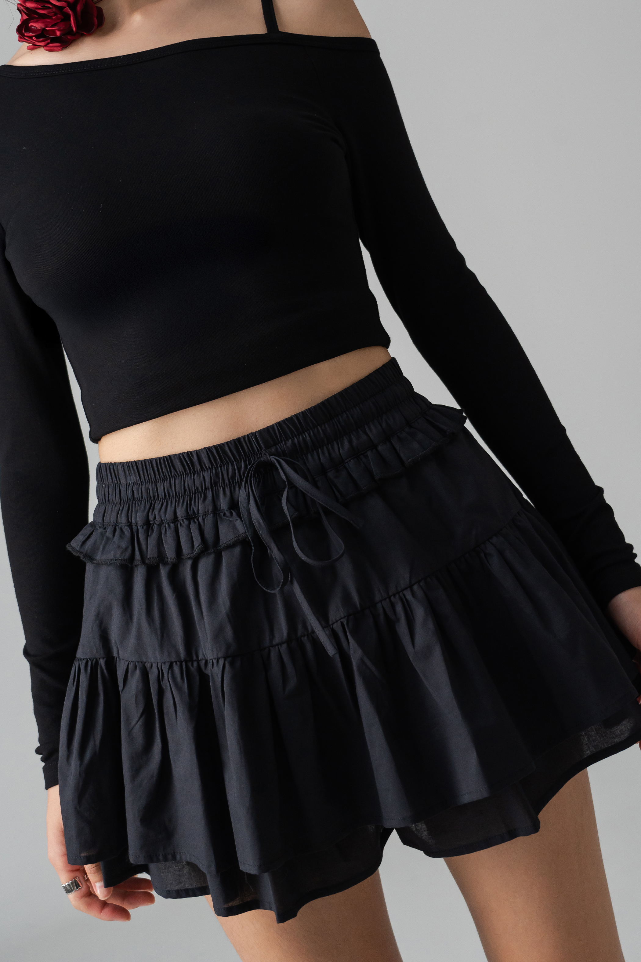 Light, lived-in, and quietly charming, the Woo Tiered Linen Skirt brings a playful flare to everyday ease. The tiered mini silhouette moves with a gentle bounce, while the rubber waist and front ribbon keep it comfortably grounded. A simple, layered staple made for lounging, styling, and everything in between.