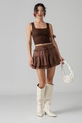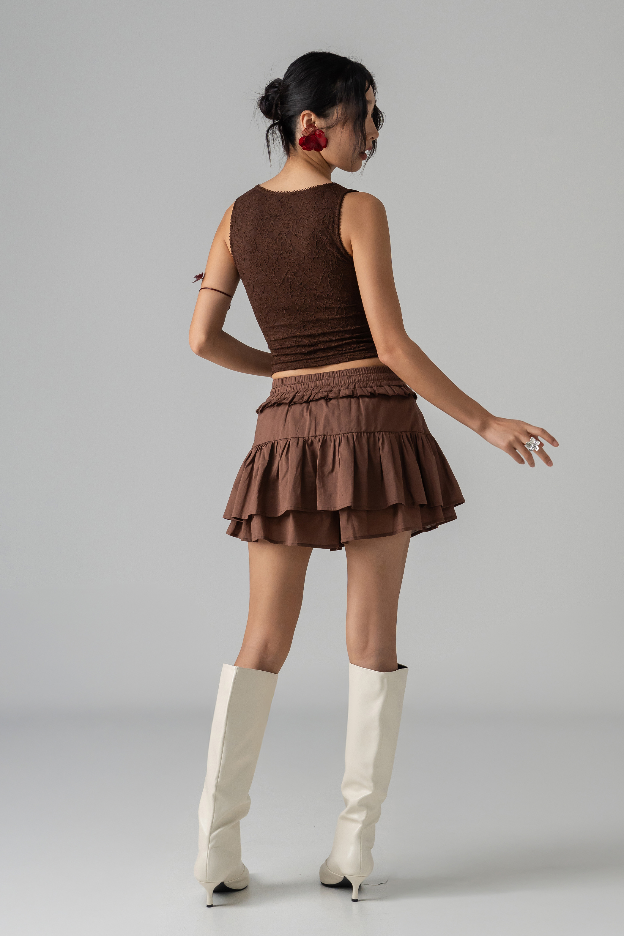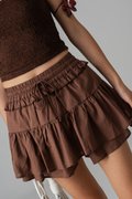 Light, lived-in, and quietly charming, the Woo Tiered Linen Skirt brings a playful flare to everyday ease. The tiered mini silhouette moves with a gentle bounce, while the rubber waist and front ribbon keep it comfortably grounded. A simple, layered staple made for lounging, styling, and everything in between.