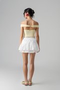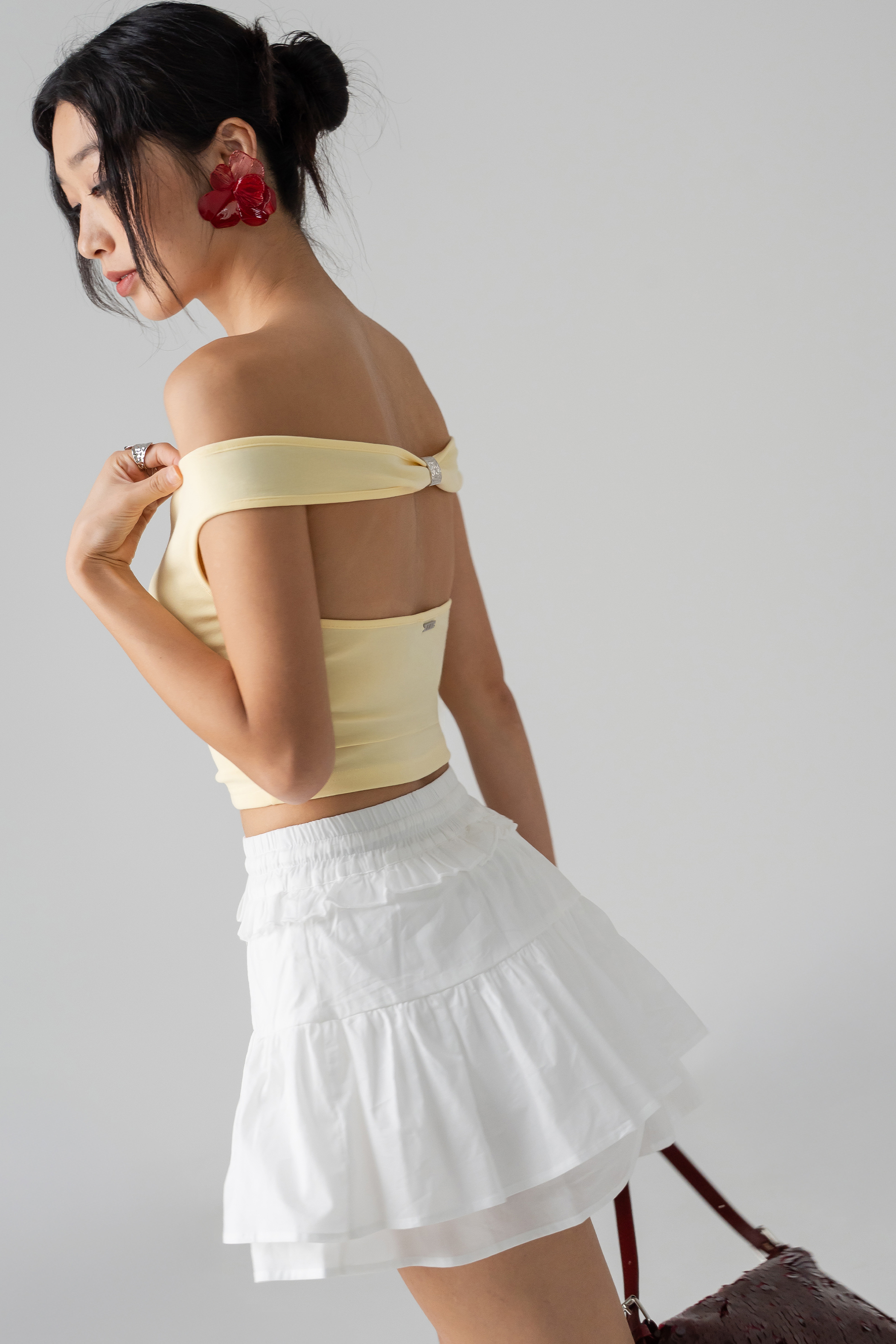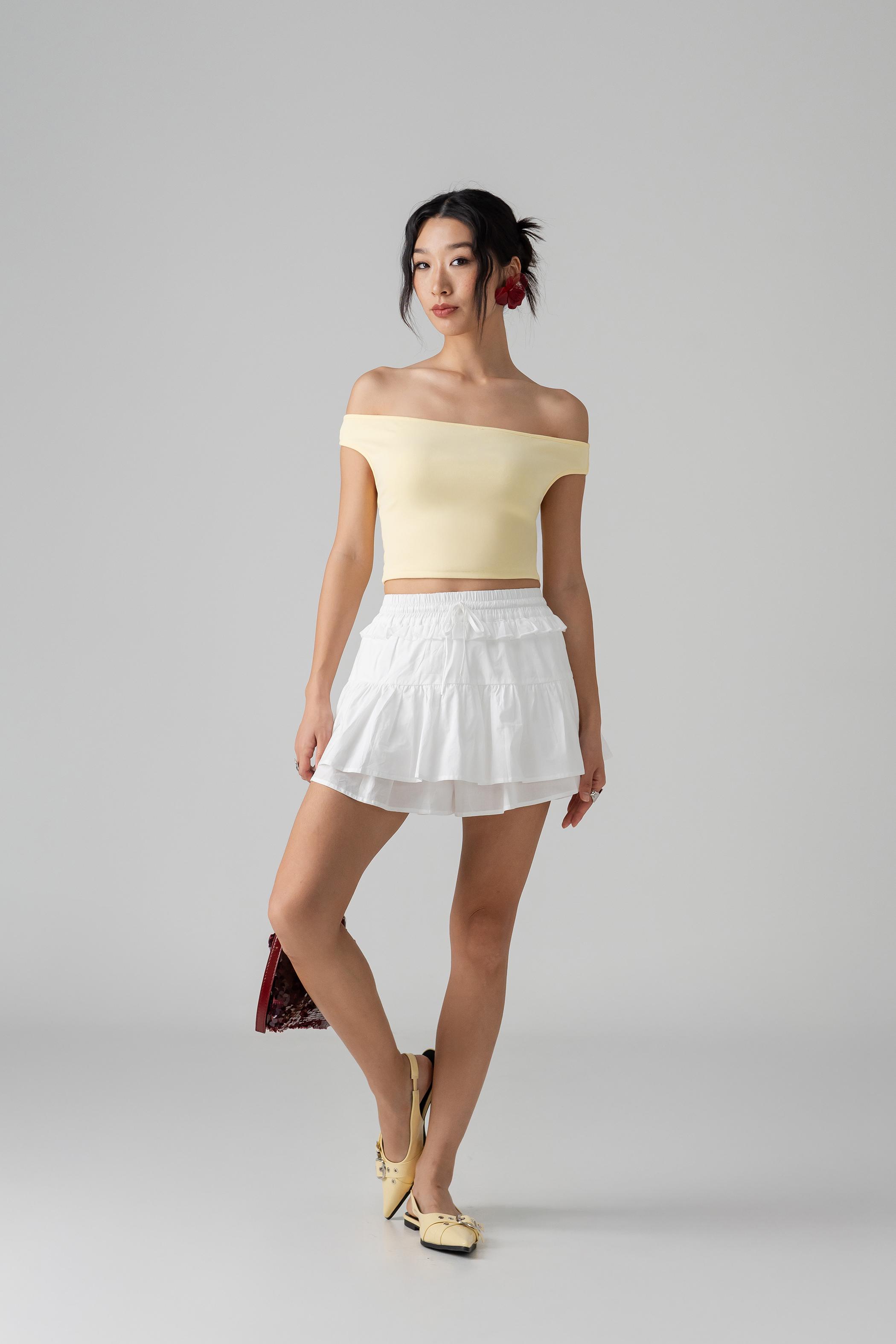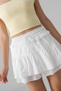 Light, lived-in, and quietly charming, the Woo Tiered Linen Skirt brings a playful flare to everyday ease. The tiered mini silhouette moves with a gentle bounce, while the rubber waist and front ribbon keep it comfortably grounded. A simple, layered staple made for lounging, styling, and everything in between.