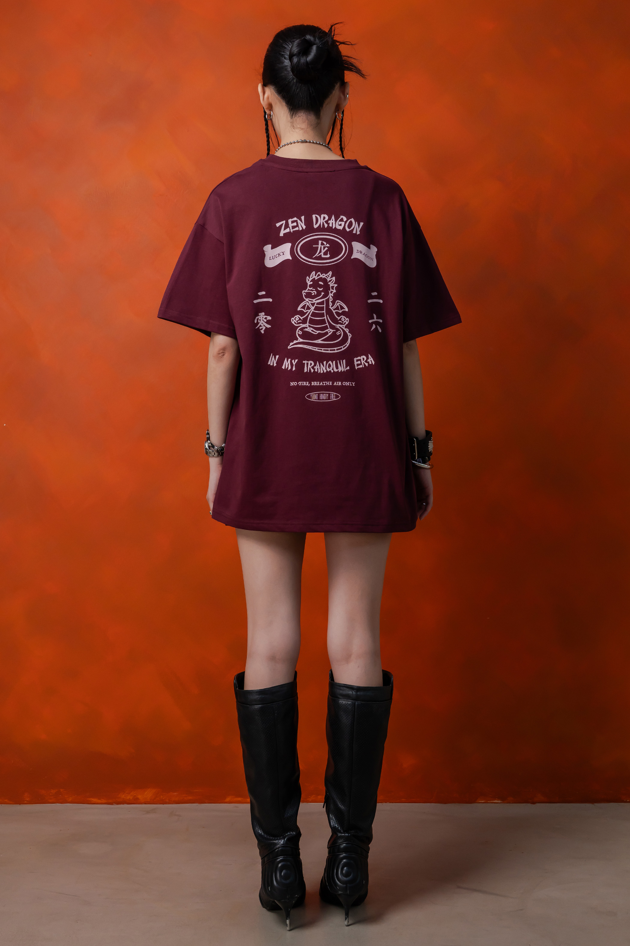 Zen Dragon Tee in Dark Carmine